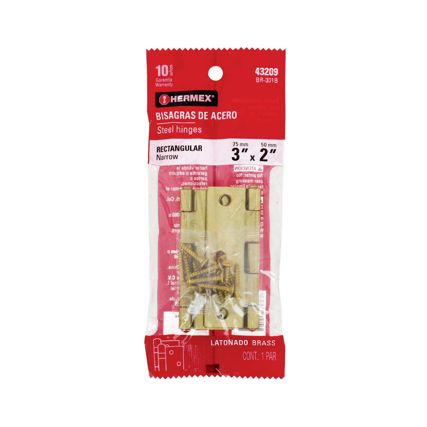 Bolsa con 2 bisagras rectangulares 3-1/2, acero latonado – Truper