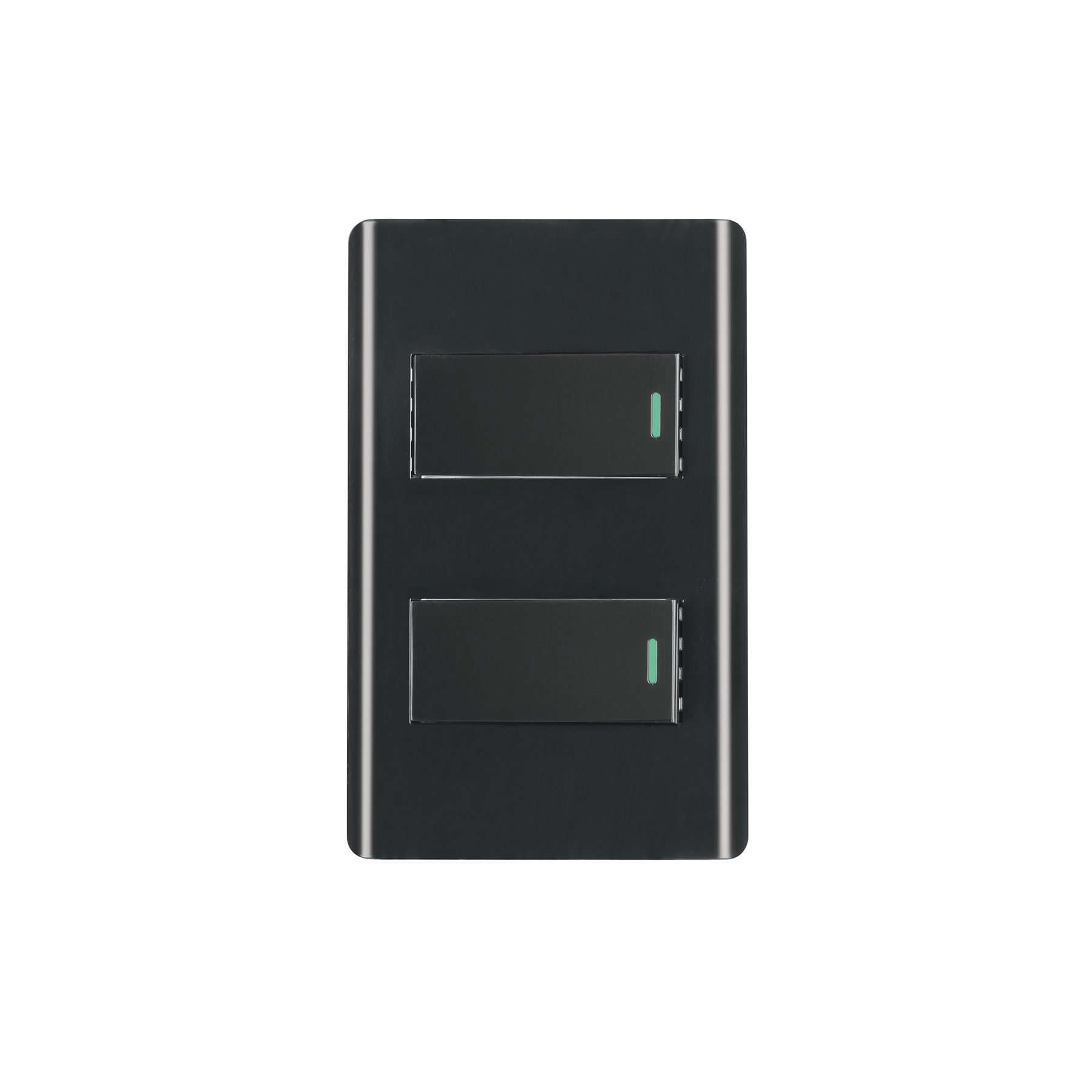 Placa armada negra con 2 interruptores 1 módulo, Lisboa – Truper