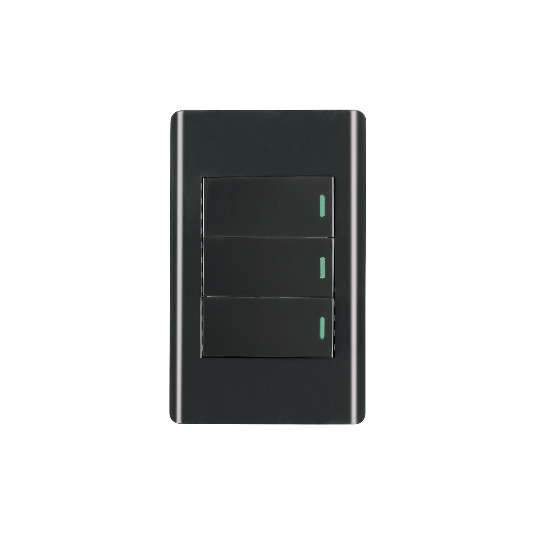 Placa armada negra 3 interruptores 1 módulo, Lisboa, Volteck – Truper