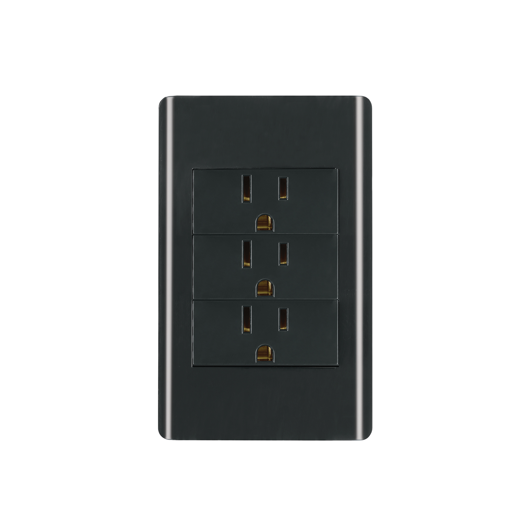 Placa armada negra contacto dúplex 3 módulos, Lisboa – Truper