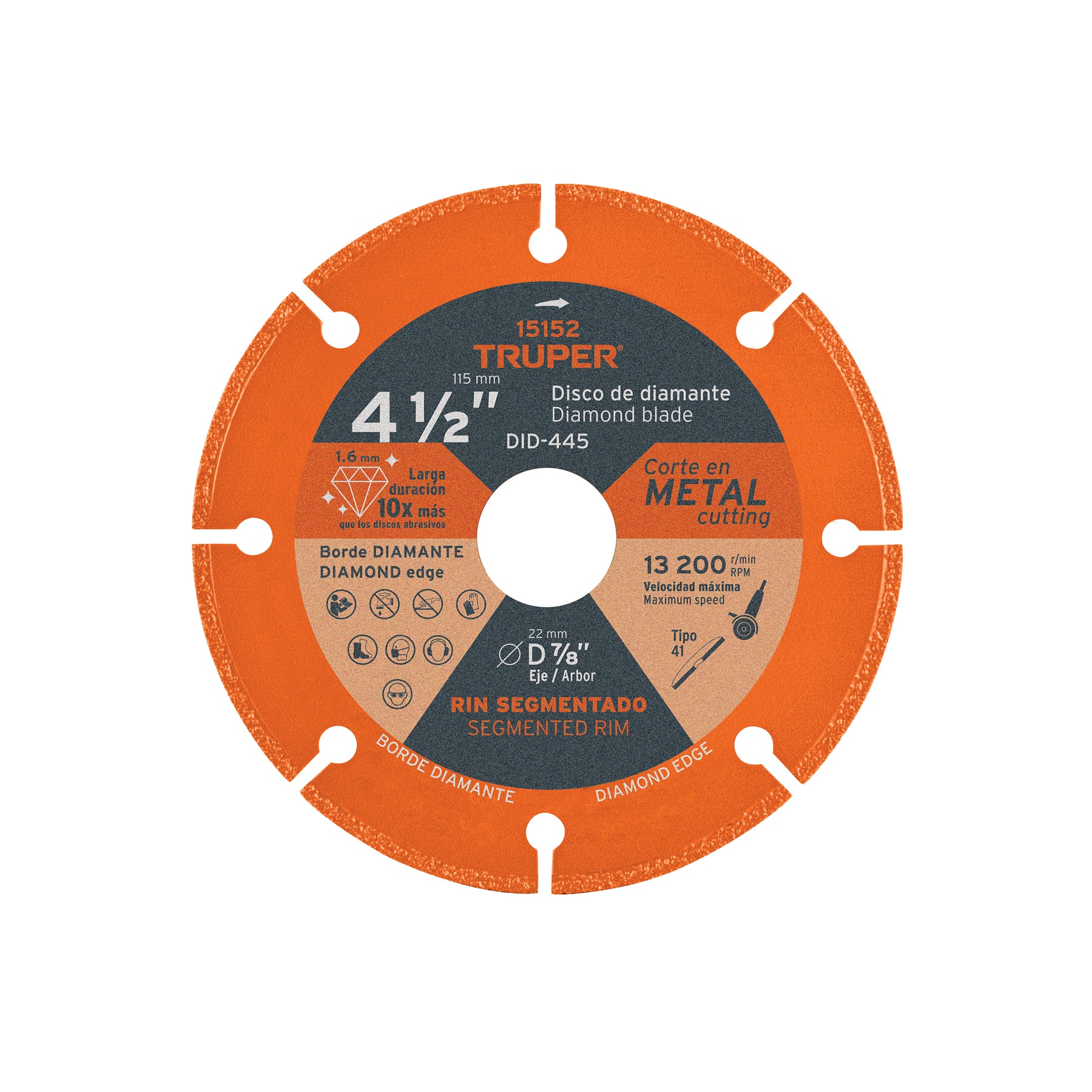 Disco de diamante de 4-1/2 x 1.6 mm, corte de metal, TRUPER