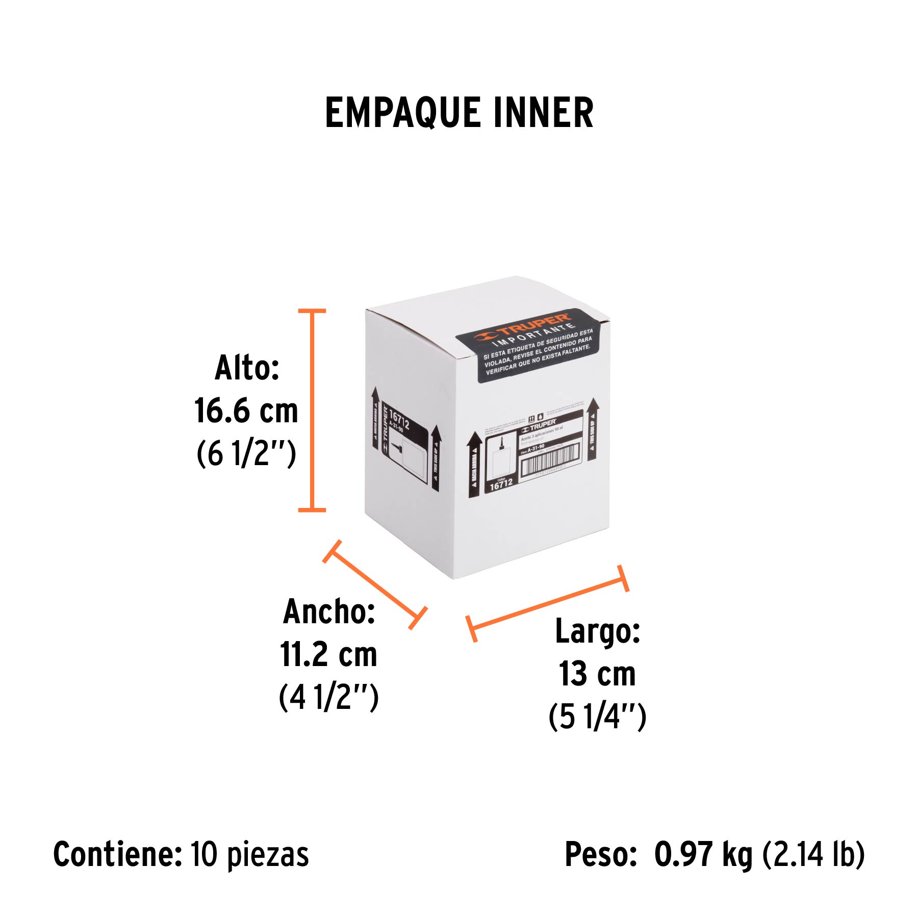 Las imágenes de los productos son ilustrativas y pueden diferir del producto real. Por favor, lea detenidamente las especificaciones, advertencias e instrucciones antes de utilizar cualquier producto. La garantía aplica únicamente ante fallas derivadas de defectos de fabricación. Quedan excluidos de cobertura los daños provocados por uso indebido, abuso o manejo inadecuado. Codigo 16712 Clave A-31-90