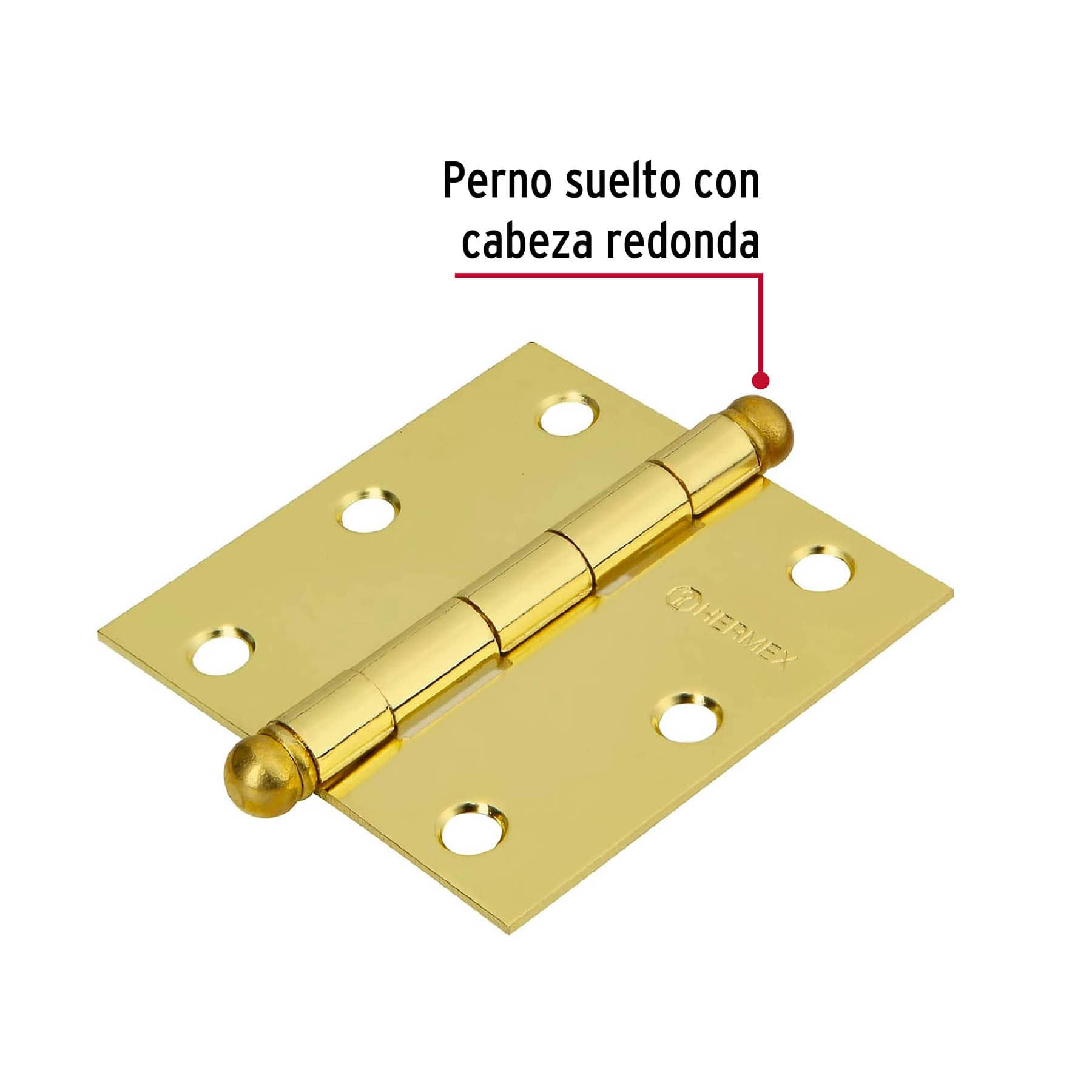 Bolsa c/2 bisagras cuadradas 3, latonado, cabeza redonda – Truper