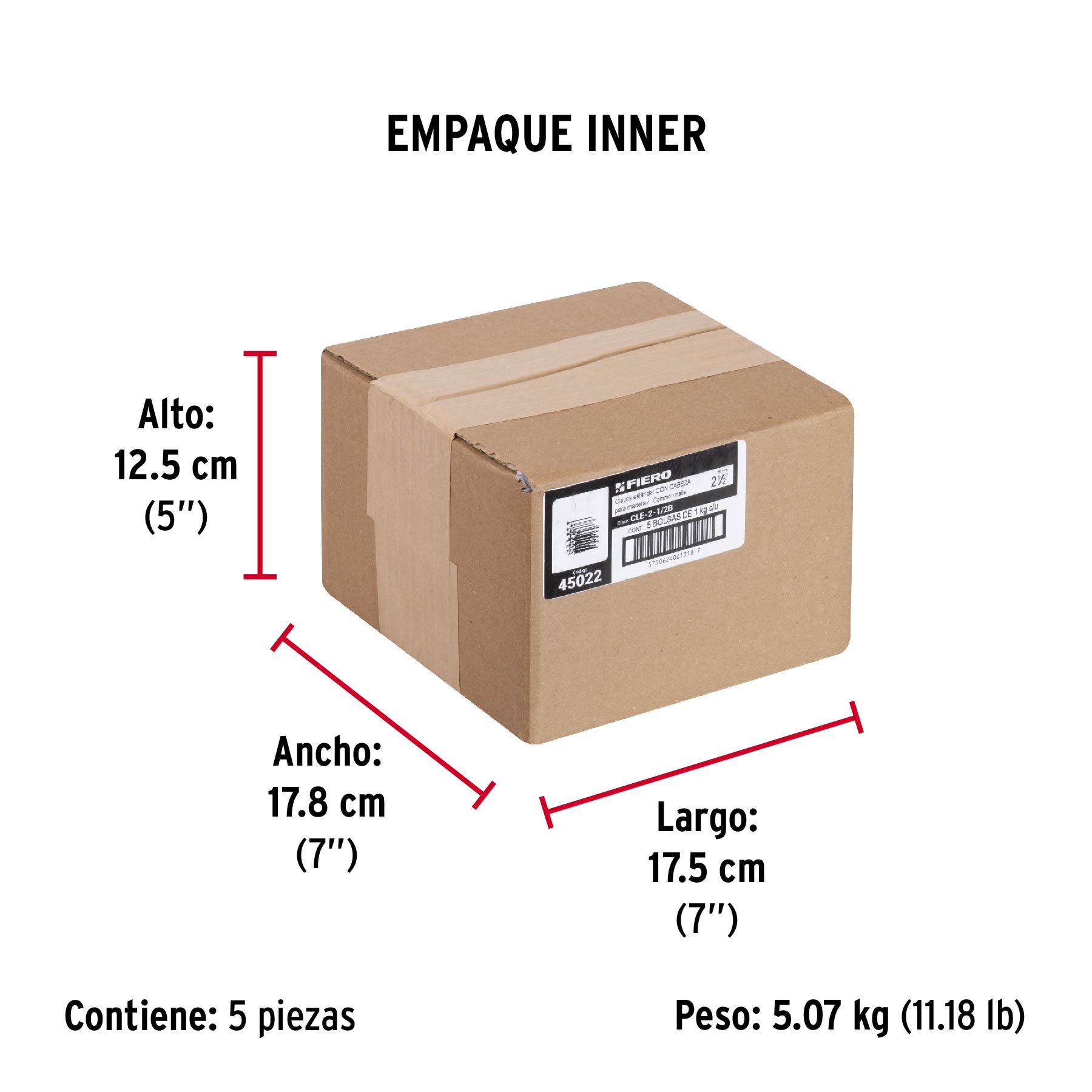 Las imágenes de los productos son ilustrativas y pueden diferir del producto real. Por favor, lea detenidamente las especificaciones, advertencias e instrucciones antes de utilizar cualquier producto. La garantía aplica únicamente ante fallas derivadas de defectos de fabricación. Quedan excluidos de cobertura los daños provocados por uso indebido, abuso o manejo inadecuado. Codigo 45022 Clave CLE-2-1/2B