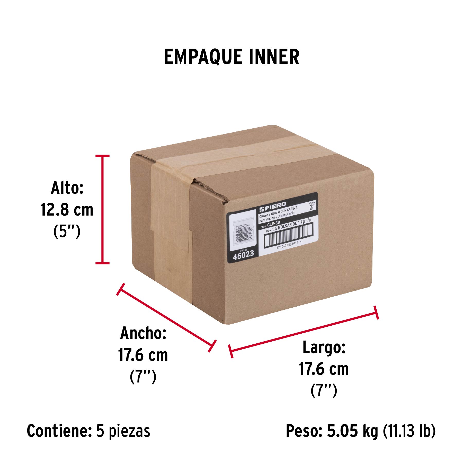 Bolsa con 1 kg de clavo estándar 3 con cabeza, FIERO – Truper