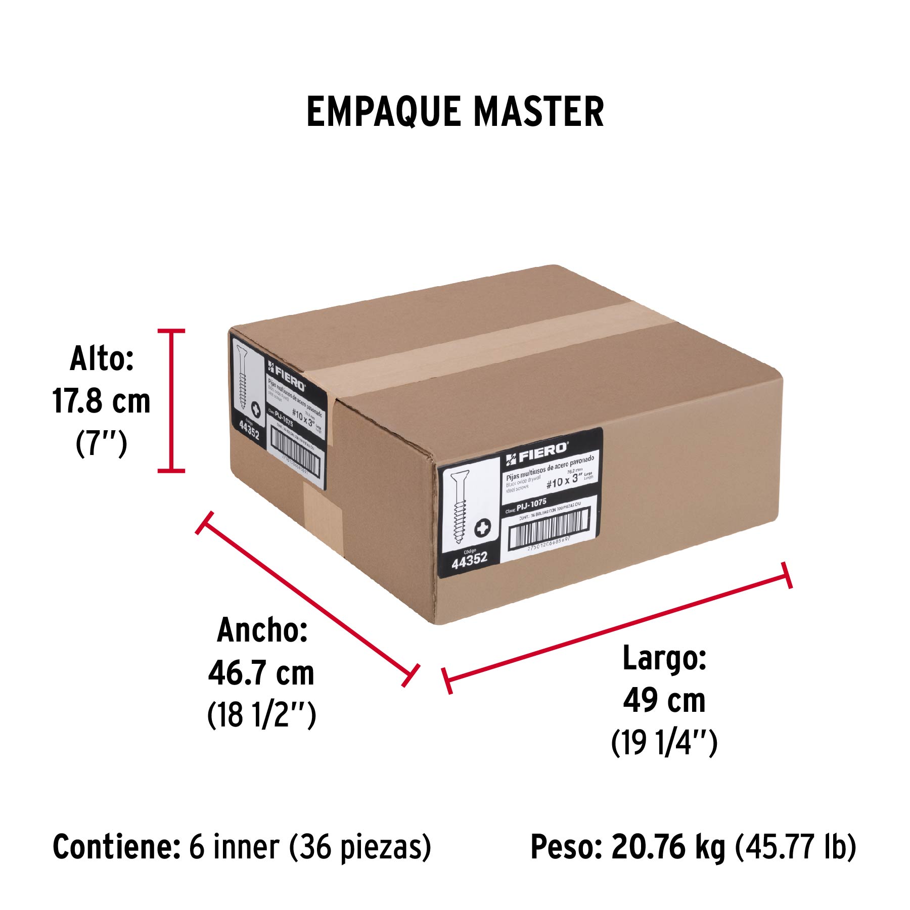 Las imágenes de los productos son ilustrativas y pueden diferir del producto real. Por favor, lea detenidamente las especificaciones, advertencias e instrucciones antes de utilizar cualquier producto. La garantía aplica únicamente ante fallas derivadas de defectos de fabricación. Quedan excluidos de cobertura los daños provocados por uso indebido, abuso o manejo inadecuado. Codigo 44352 Clave PIJ-1075