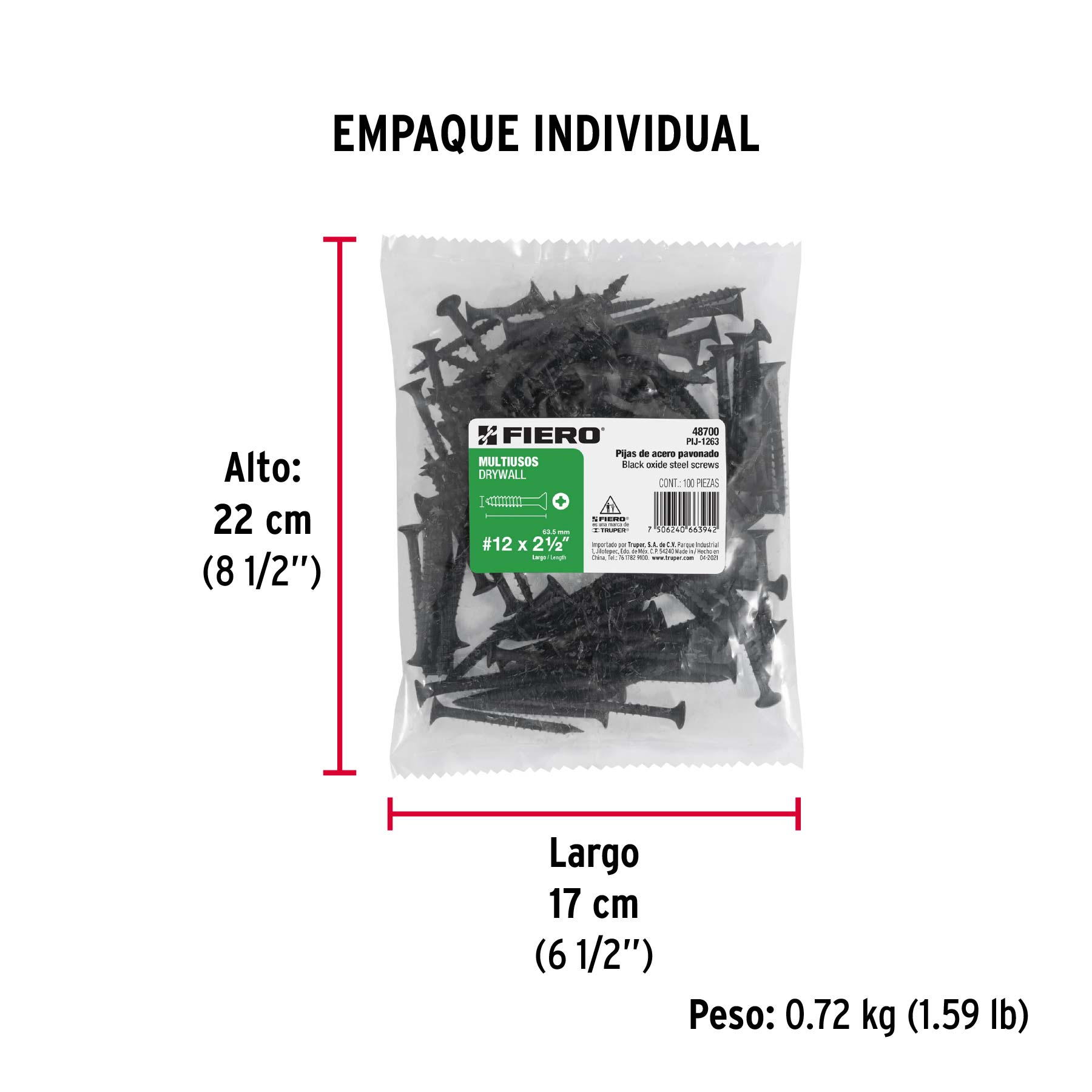 Bolsa con 100 pijas #12 x 2-1/2 multiusos, FIERO – Truper