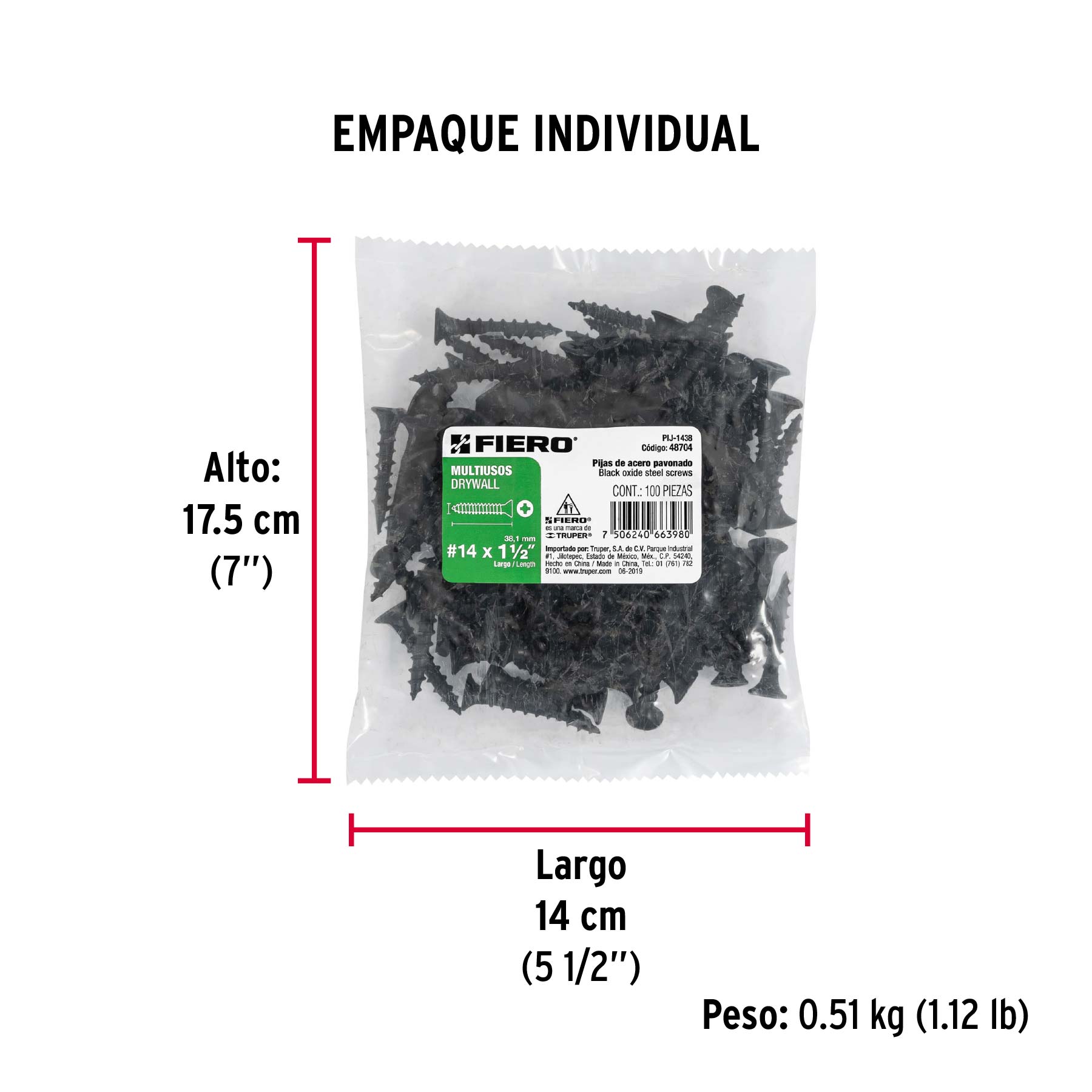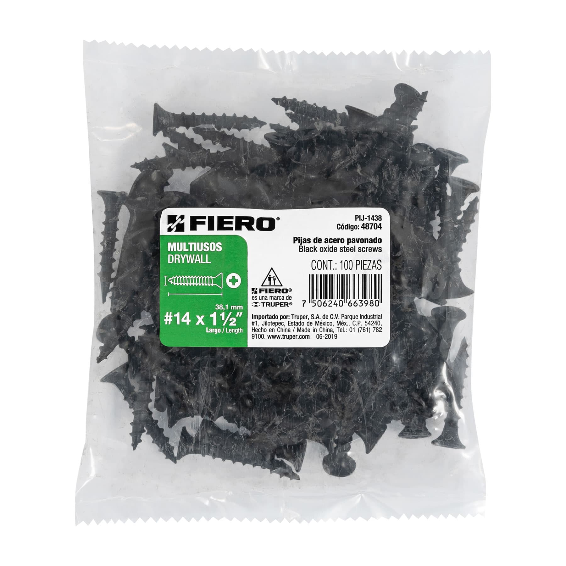 Bolsa con 100 pijas #14 x 1-1/2 multiusos, FIERO – Truper