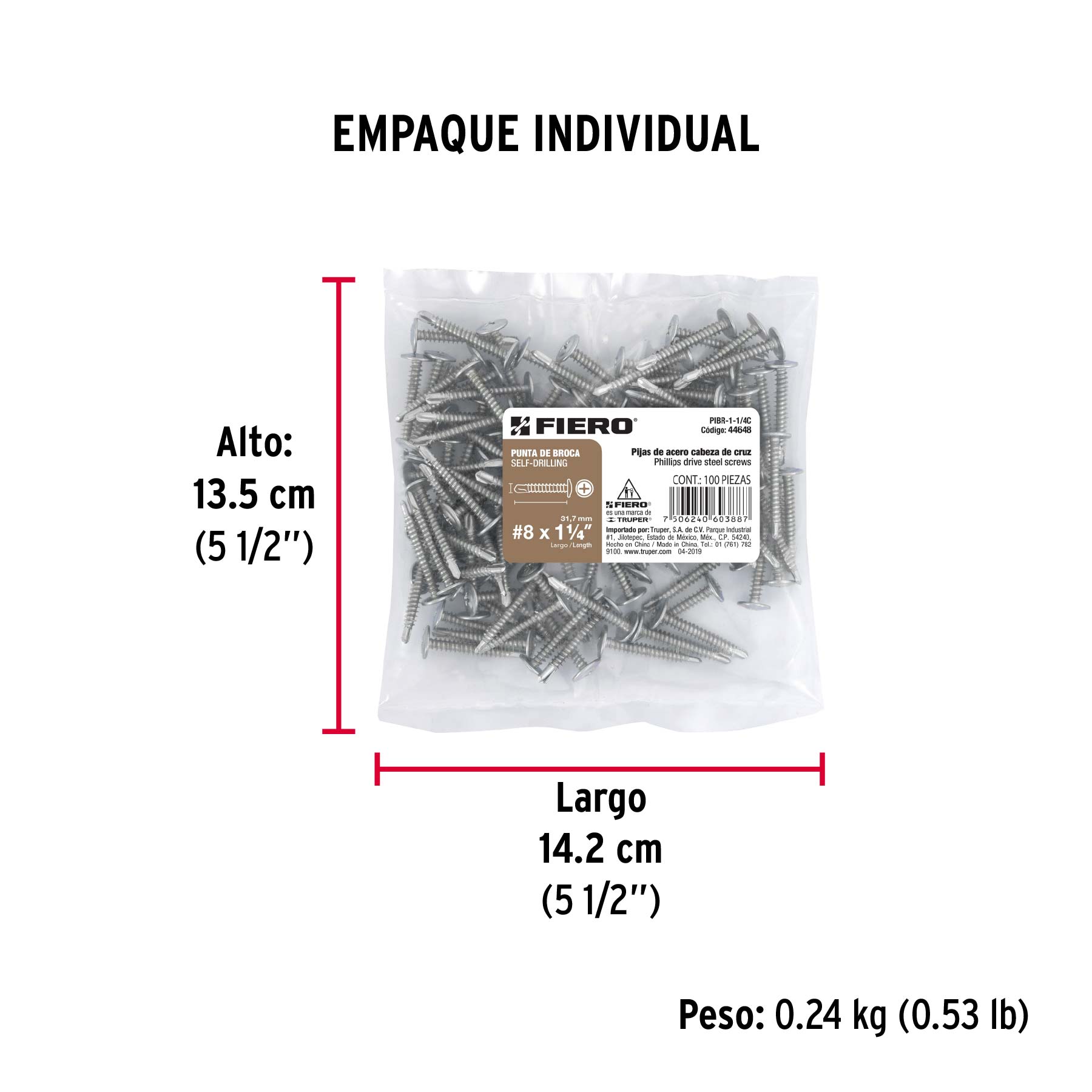 Las imágenes de los productos son ilustrativas y pueden diferir del producto real. Por favor, lea detenidamente las especificaciones, advertencias e instrucciones antes de utilizar cualquier producto. La garantía aplica únicamente ante fallas derivadas de defectos de fabricación. Quedan excluidos de cobertura los daños provocados por uso indebido, abuso o manejo inadecuado. Codigo 44648 Clave PIBR-1-1/4C