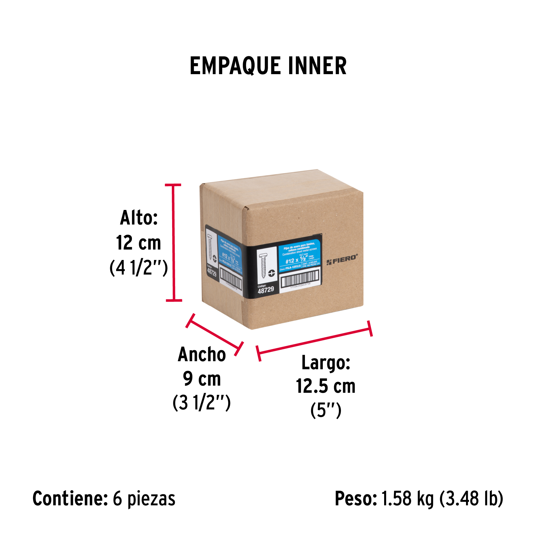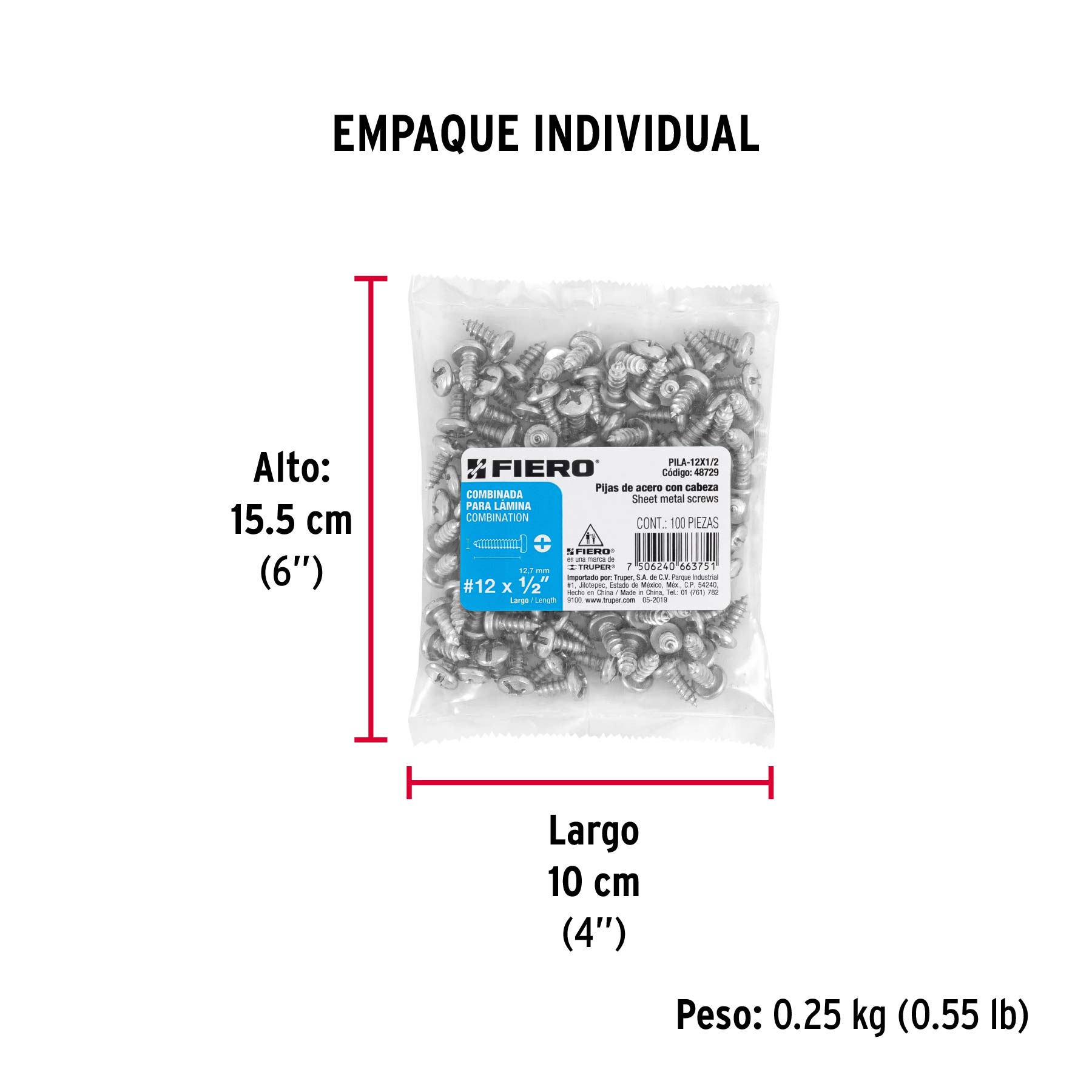 Las imágenes de los productos son ilustrativas y pueden diferir del producto real. Por favor, lea detenidamente las especificaciones, advertencias e instrucciones antes de utilizar cualquier producto. La garantía aplica únicamente ante fallas derivadas de defectos de fabricación. Quedan excluidos de cobertura los daños provocados por uso indebido, abuso o manejo inadecuado. Codigo 48729 Clave PILA-12X1/2