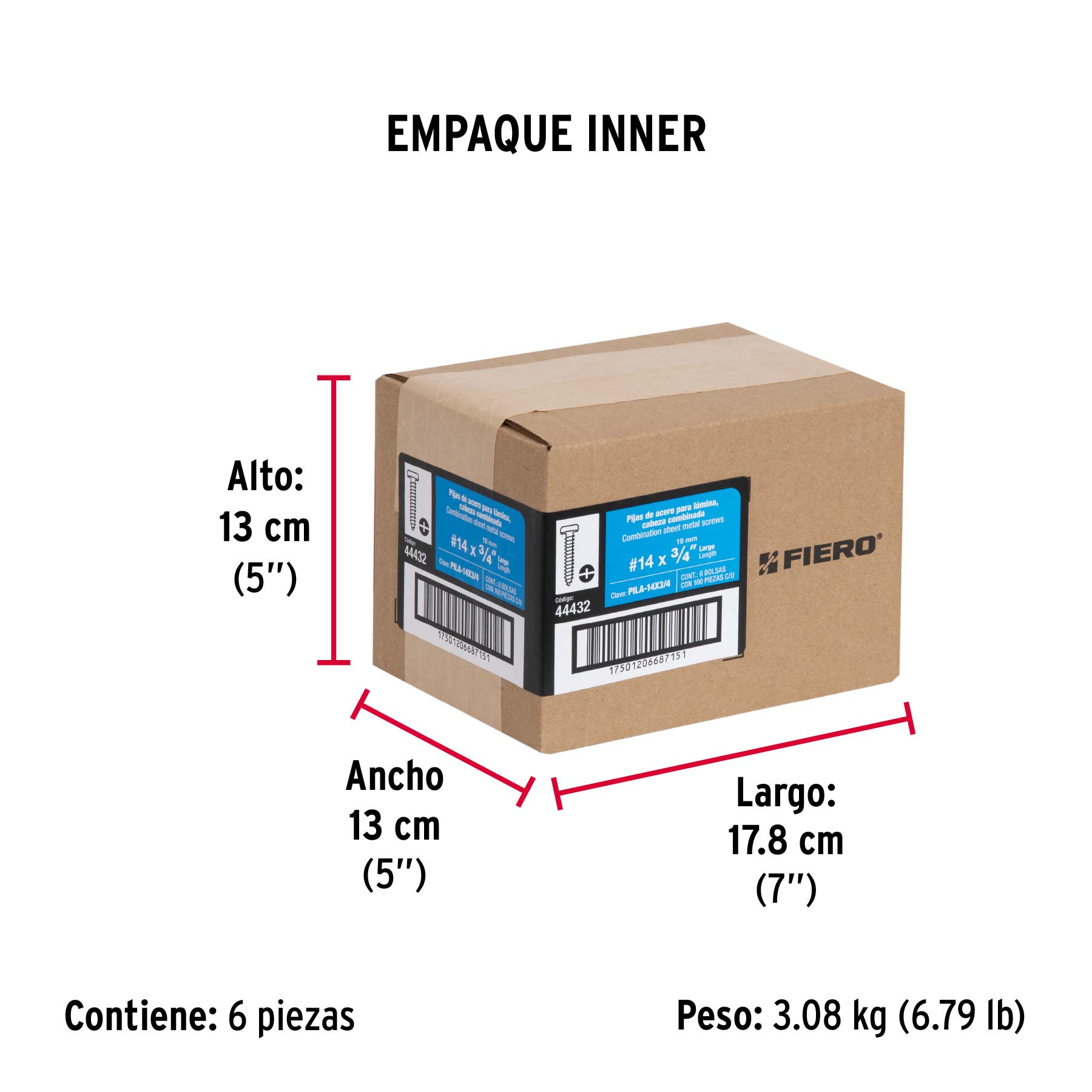 Las imágenes de los productos son ilustrativas y pueden diferir del producto real. Por favor, lea detenidamente las especificaciones, advertencias e instrucciones antes de utilizar cualquier producto. La garantía aplica únicamente ante fallas derivadas de defectos de fabricación. Quedan excluidos de cobertura los daños provocados por uso indebido, abuso o manejo inadecuado. Codigo 44432 Clave PILA-14X3/4