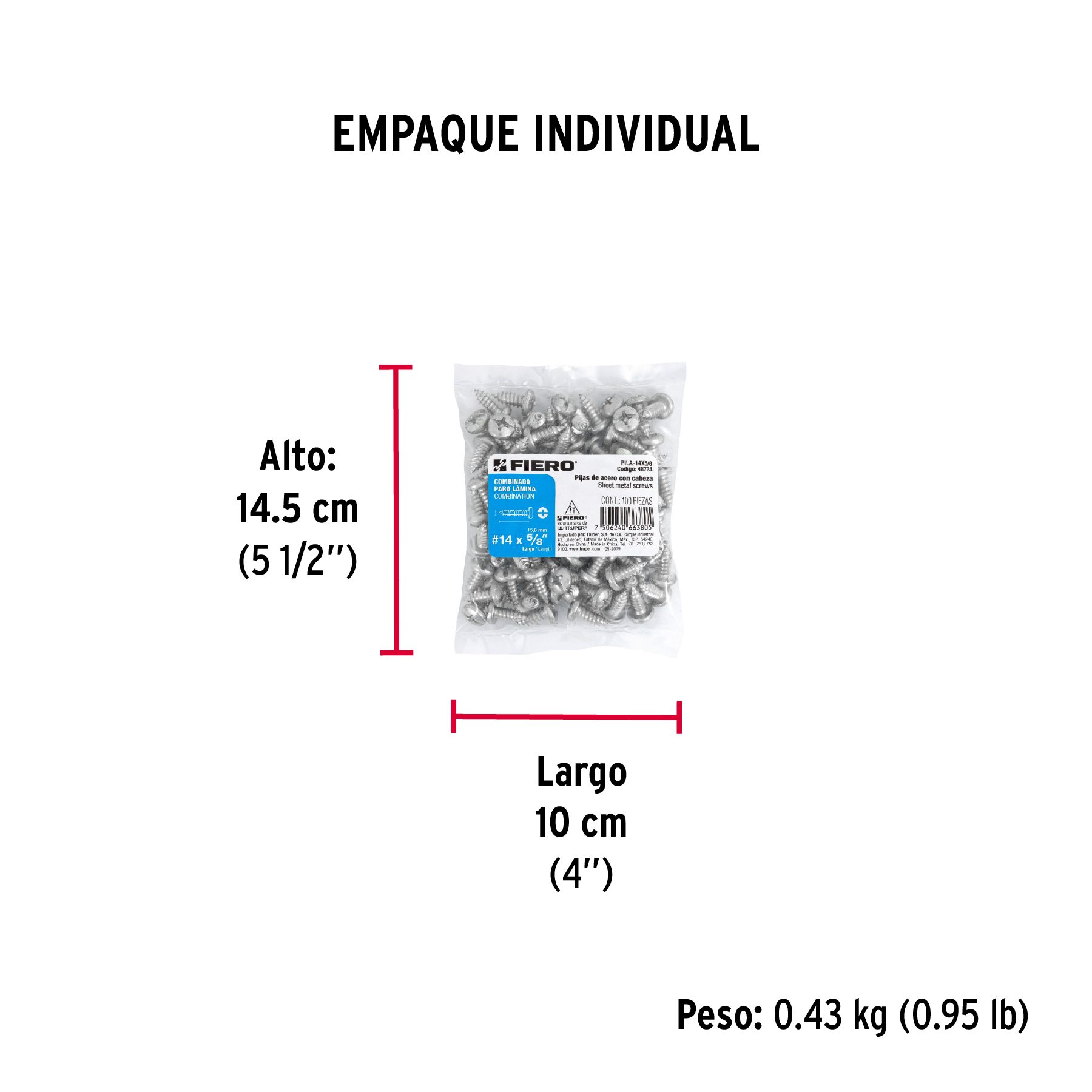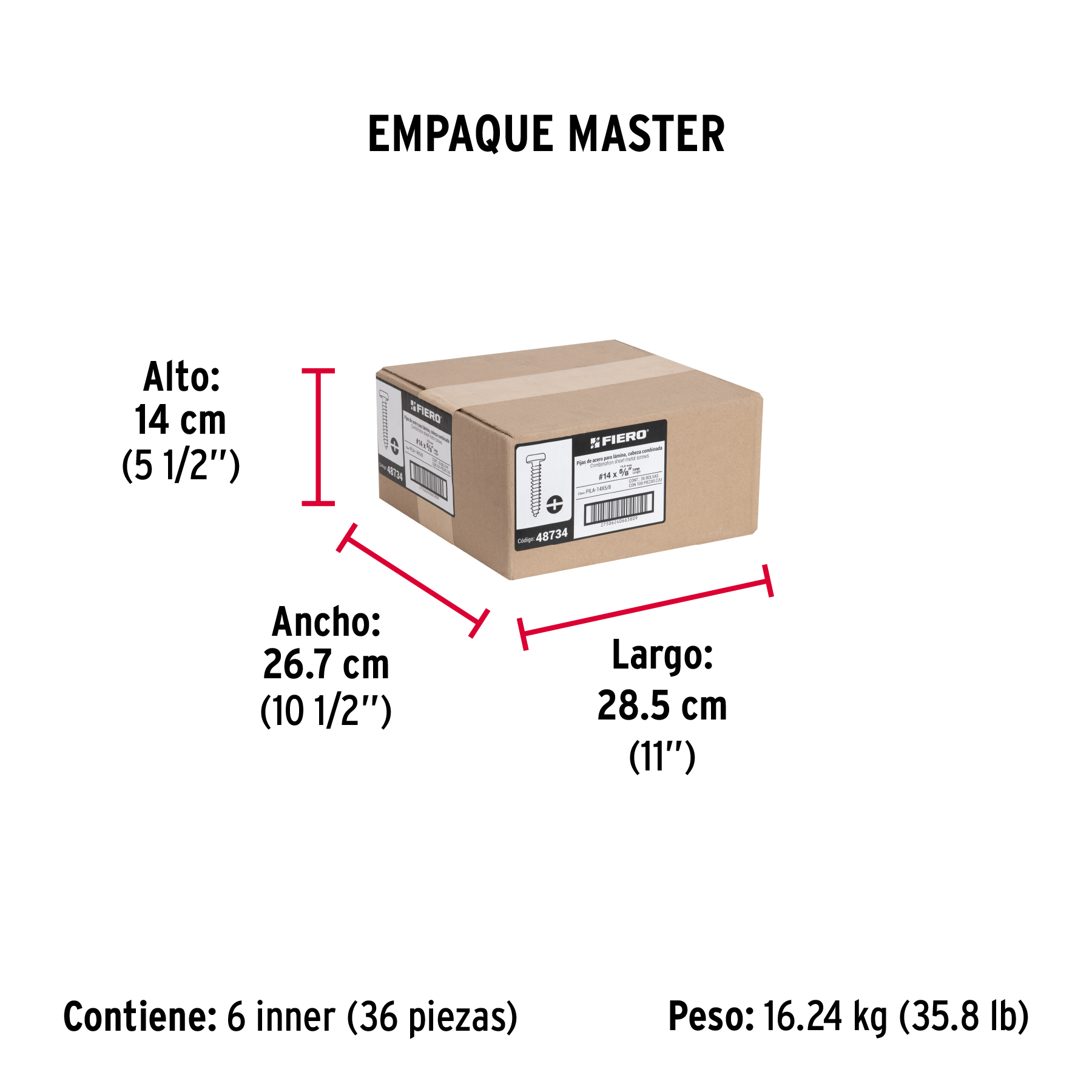 Las imágenes de los productos son ilustrativas y pueden diferir del producto real. Por favor, lea detenidamente las especificaciones, advertencias e instrucciones antes de utilizar cualquier producto. La garantía aplica únicamente ante fallas derivadas de defectos de fabricación. Quedan excluidos de cobertura los daños provocados por uso indebido, abuso o manejo inadecuado. Codigo 48734 Clave PILA-14X5/8