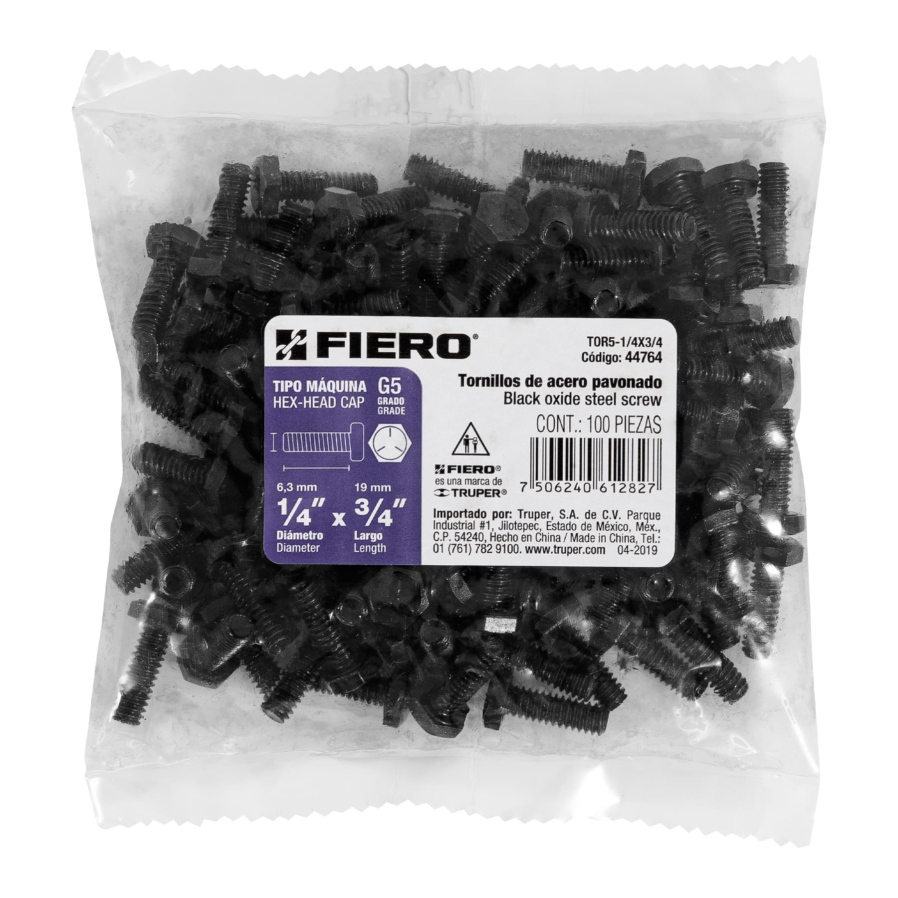 Bolsa con 100 tornillos 1/4 x 3/4 acero grado 5, FIERO – Truper