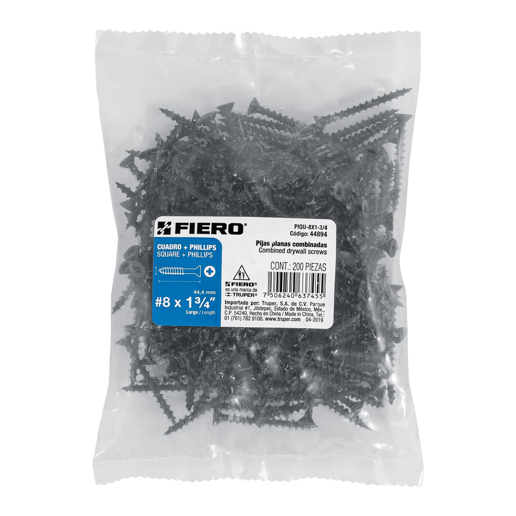Las imágenes de los productos son ilustrativas y pueden diferir del producto real. Por favor, lea detenidamente las especificaciones, advertencias e instrucciones antes de utilizar cualquier producto. La garantía aplica únicamente ante fallas derivadas de defectos de fabricación. Quedan excluidos de cobertura los daños provocados por uso indebido, abuso o manejo inadecuado. Codigo 44894 Clave PIQU-8X1-3/4