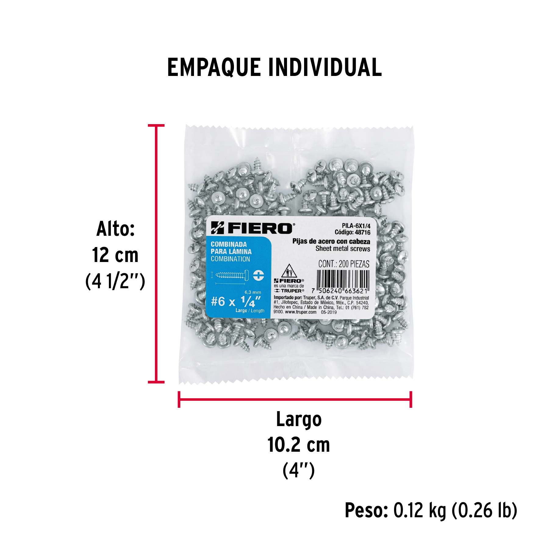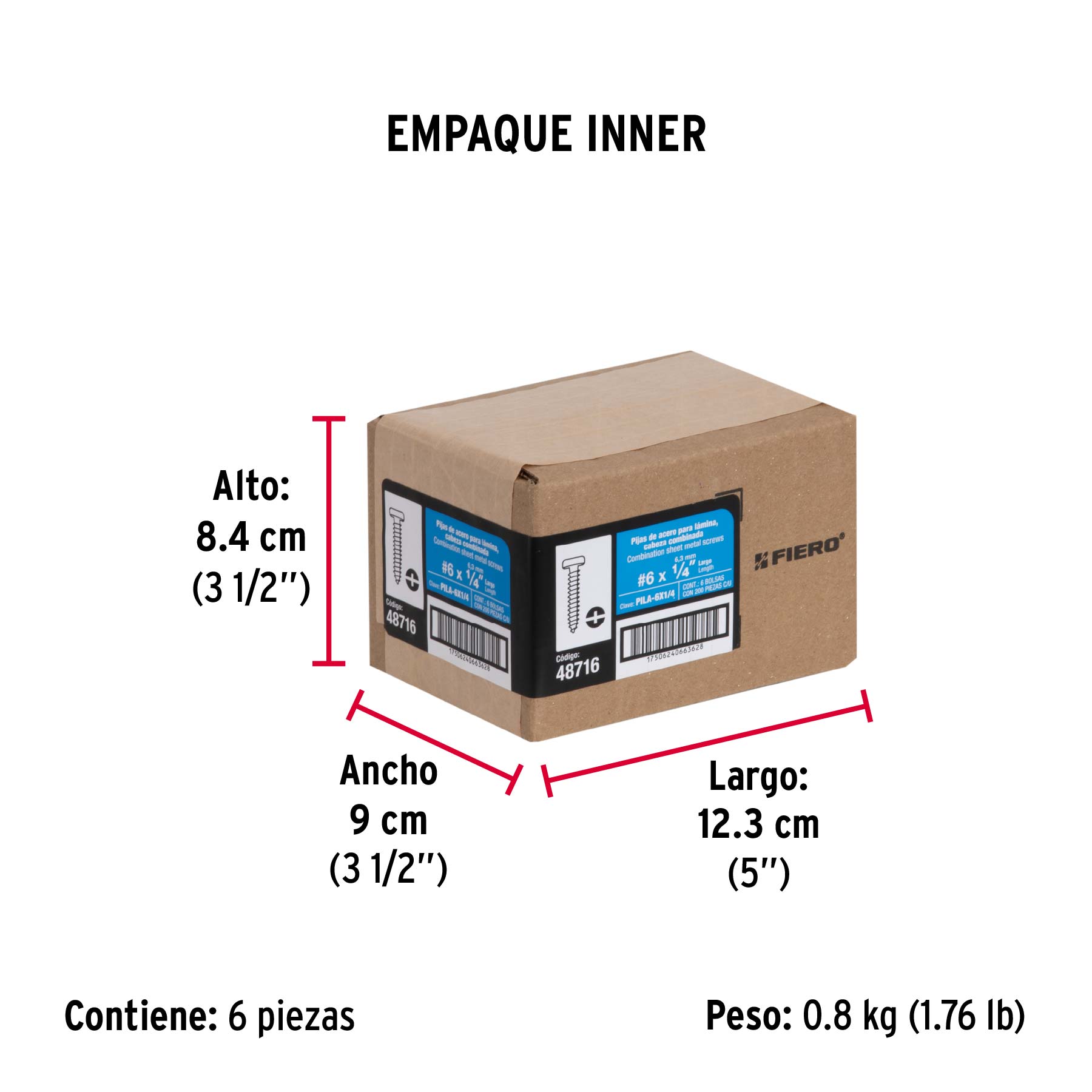 Las imágenes de los productos son ilustrativas y pueden diferir del producto real. Por favor, lea detenidamente las especificaciones, advertencias e instrucciones antes de utilizar cualquier producto. La garantía aplica únicamente ante fallas derivadas de defectos de fabricación. Quedan excluidos de cobertura los daños provocados por uso indebido, abuso o manejo inadecuado. Codigo 48716 Clave PILA-6X1/4