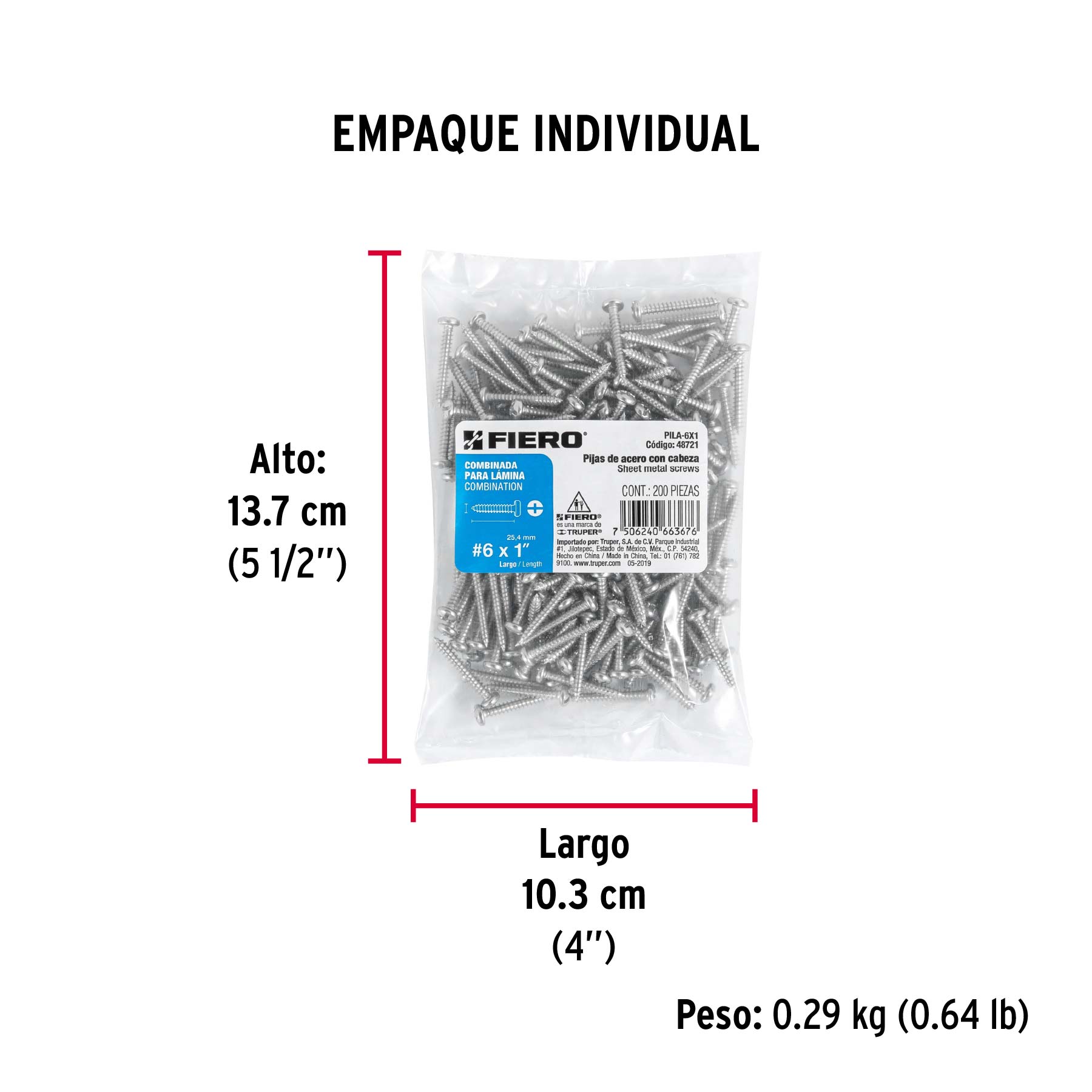 Bolsa con 200 pijas para lámina, #6 x 1, FIERO – Truper