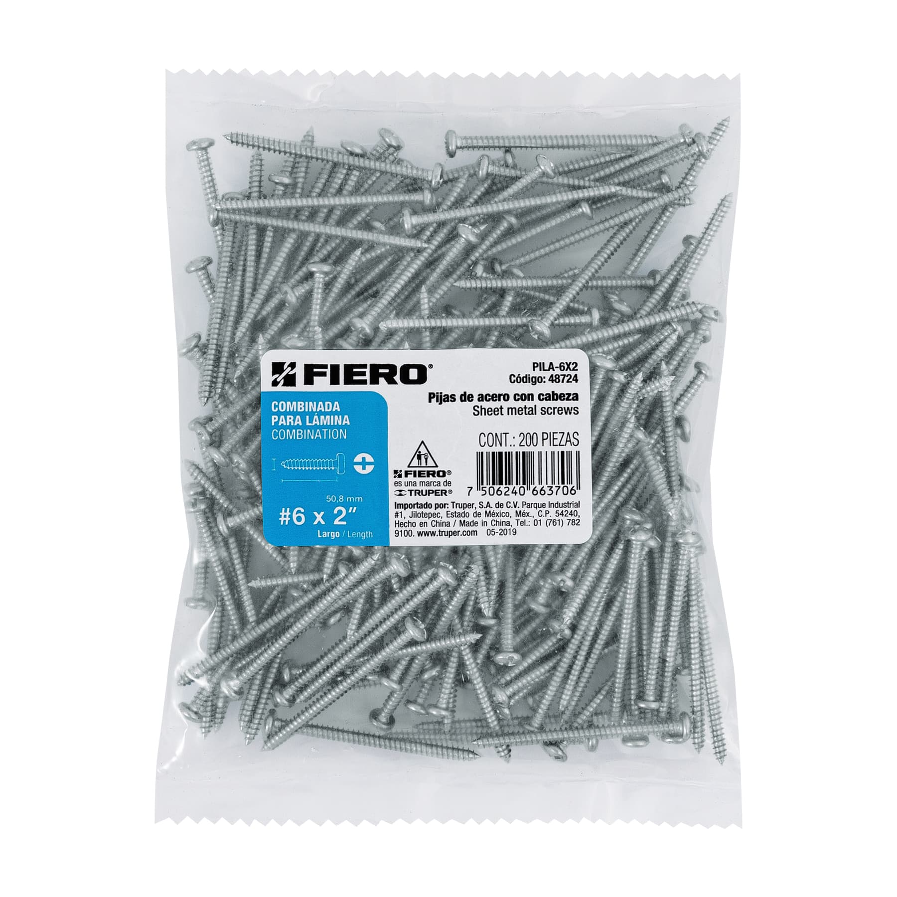 Bolsa con 200 pijas para lámina, #6 x 2, FIERO – Truper