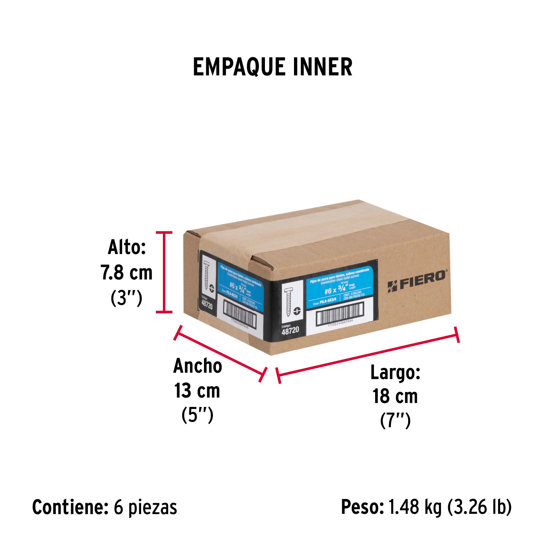 Las imágenes de los productos son ilustrativas y pueden diferir del producto real. Por favor, lea detenidamente las especificaciones, advertencias e instrucciones antes de utilizar cualquier producto. La garantía aplica únicamente ante fallas derivadas de defectos de fabricación. Quedan excluidos de cobertura los daños provocados por uso indebido, abuso o manejo inadecuado. Codigo 48720 Clave PILA-6X3/4