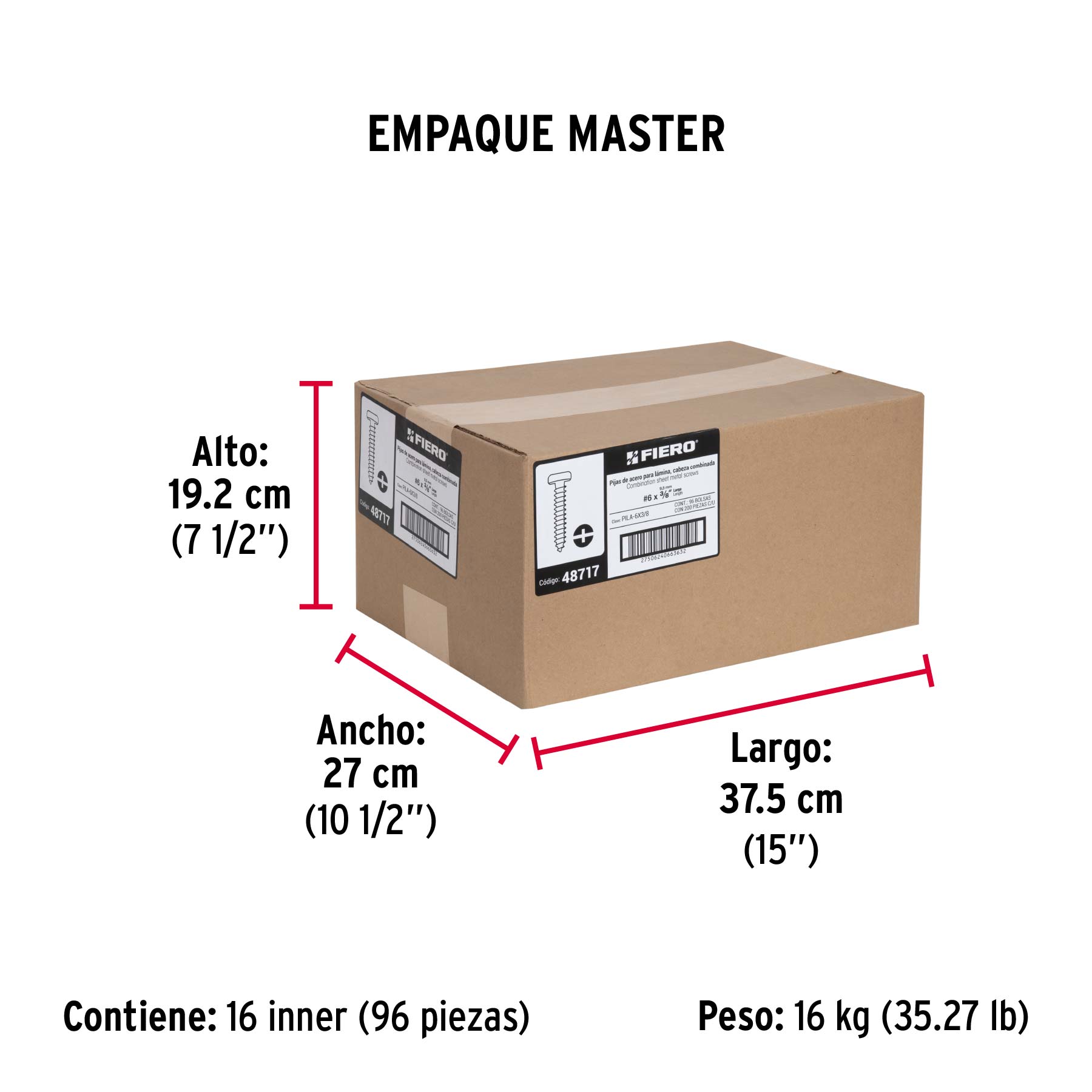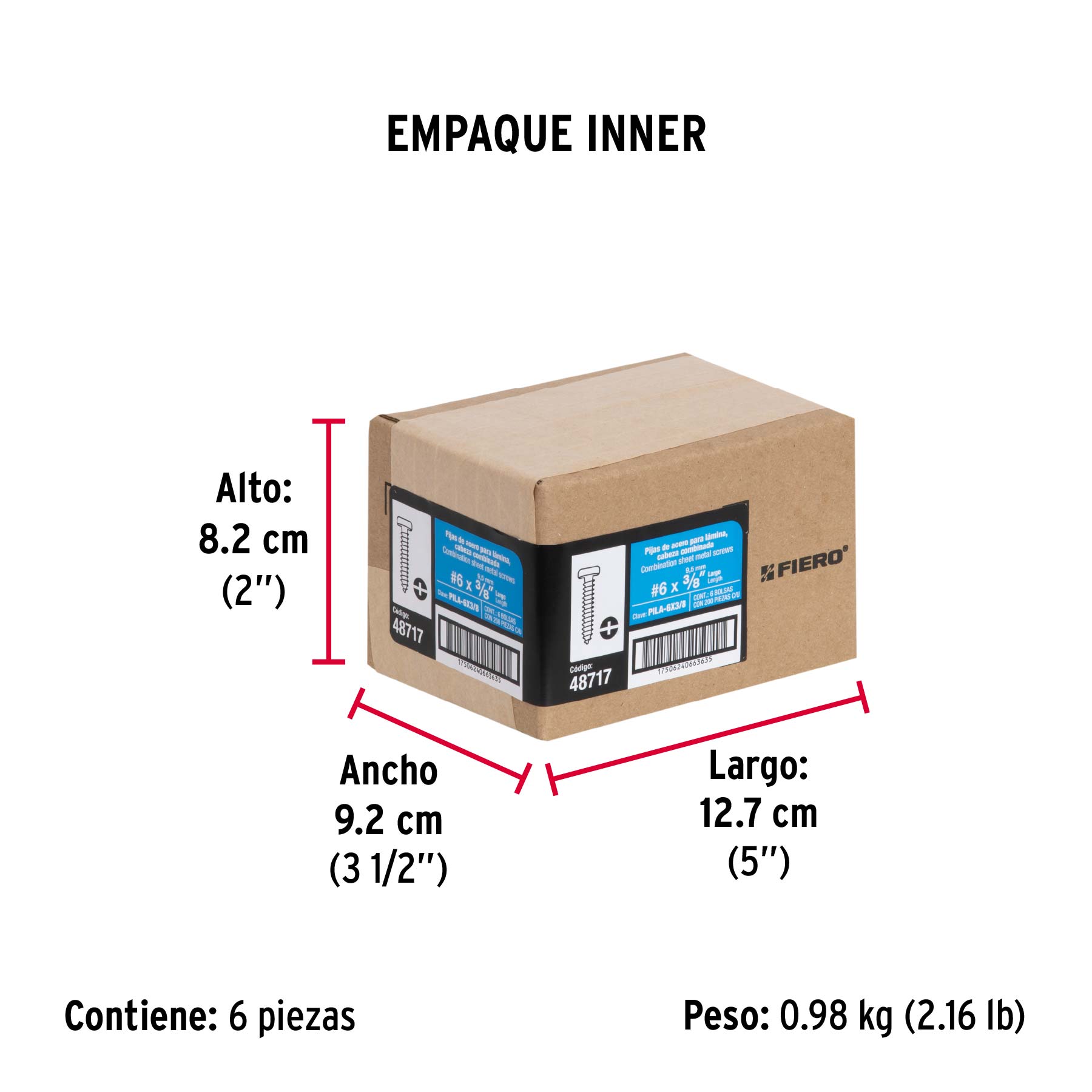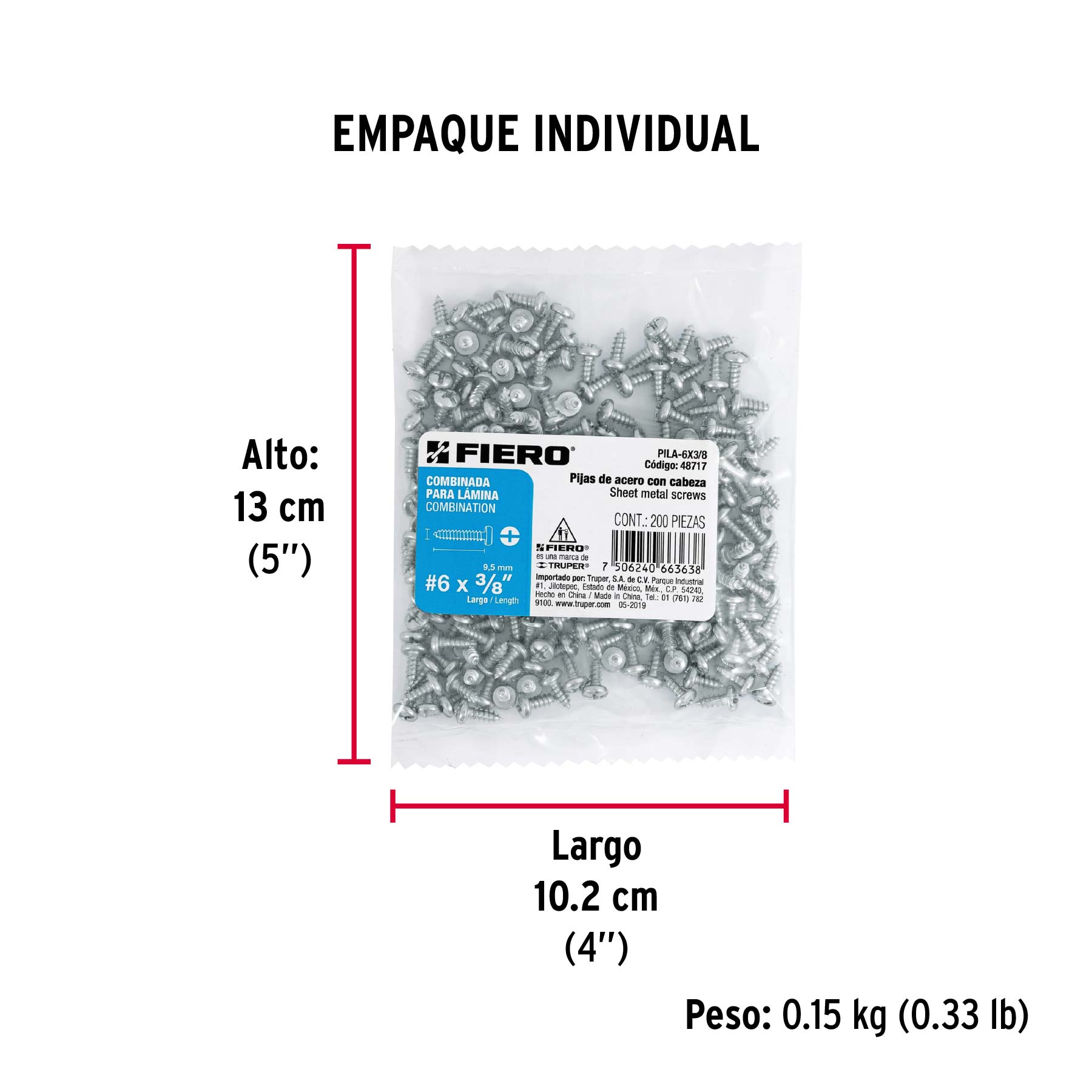 Las imágenes de los productos son ilustrativas y pueden diferir del producto real. Por favor, lea detenidamente las especificaciones, advertencias e instrucciones antes de utilizar cualquier producto. La garantía aplica únicamente ante fallas derivadas de defectos de fabricación. Quedan excluidos de cobertura los daños provocados por uso indebido, abuso o manejo inadecuado. Codigo 48717 Clave PILA-6X3/8