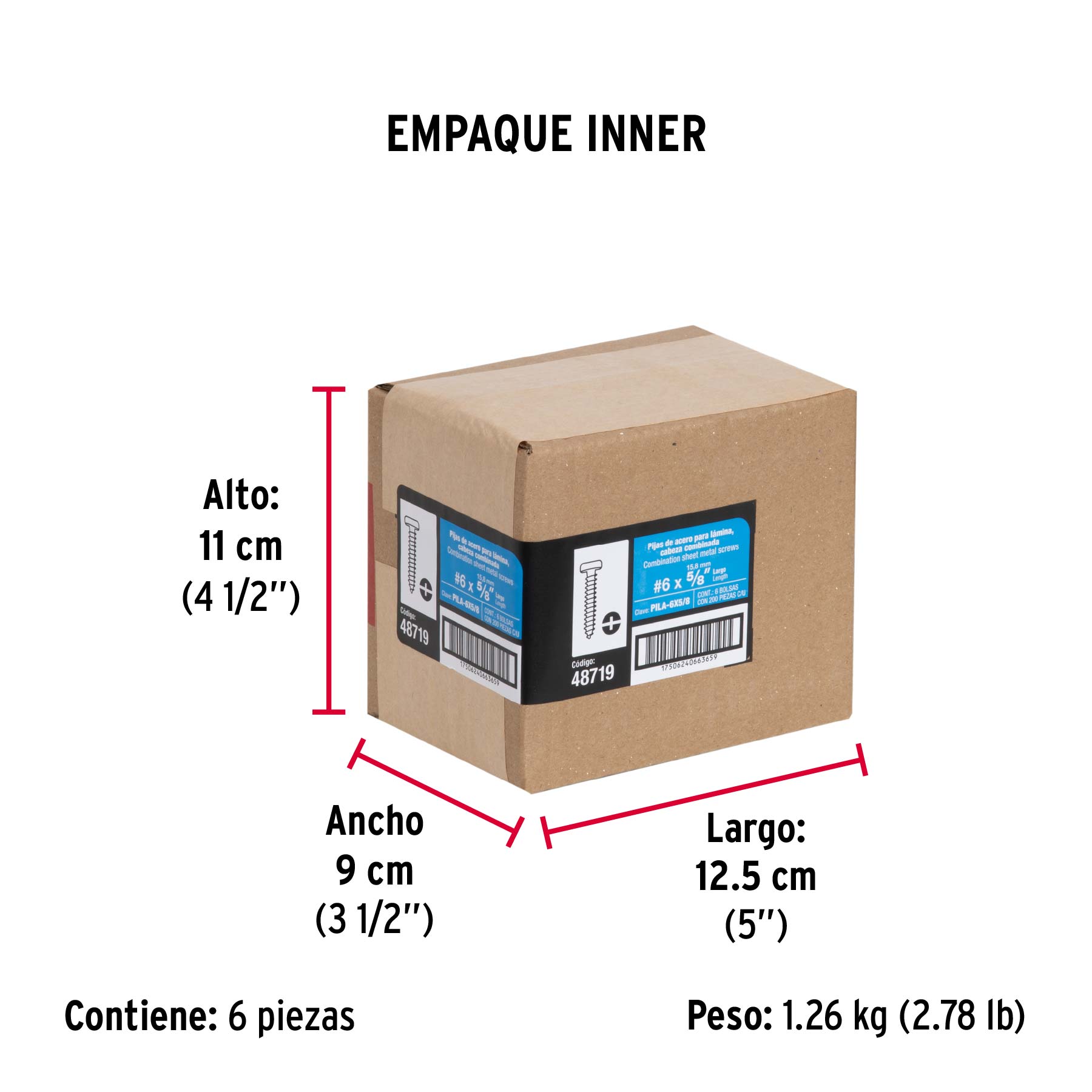 Las imágenes de los productos son ilustrativas y pueden diferir del producto real. Por favor, lea detenidamente las especificaciones, advertencias e instrucciones antes de utilizar cualquier producto. La garantía aplica únicamente ante fallas derivadas de defectos de fabricación. Quedan excluidos de cobertura los daños provocados por uso indebido, abuso o manejo inadecuado. Codigo 48719 Clave PILA-6X5/8