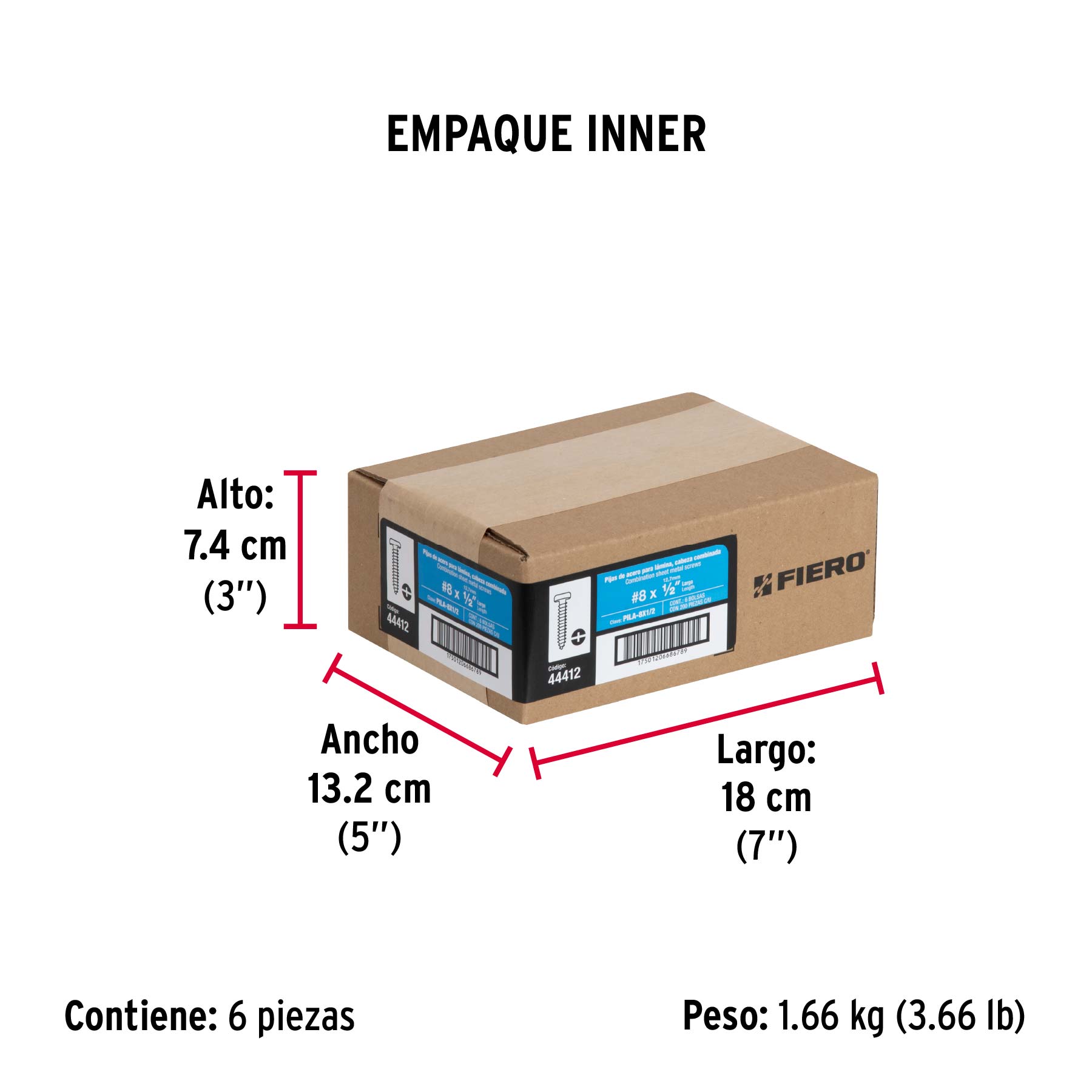 Las imágenes de los productos son ilustrativas y pueden diferir del producto real. Por favor, lea detenidamente las especificaciones, advertencias e instrucciones antes de utilizar cualquier producto. La garantía aplica únicamente ante fallas derivadas de defectos de fabricación. Quedan excluidos de cobertura los daños provocados por uso indebido, abuso o manejo inadecuado. Codigo 44412 Clave PILA-8X1/2