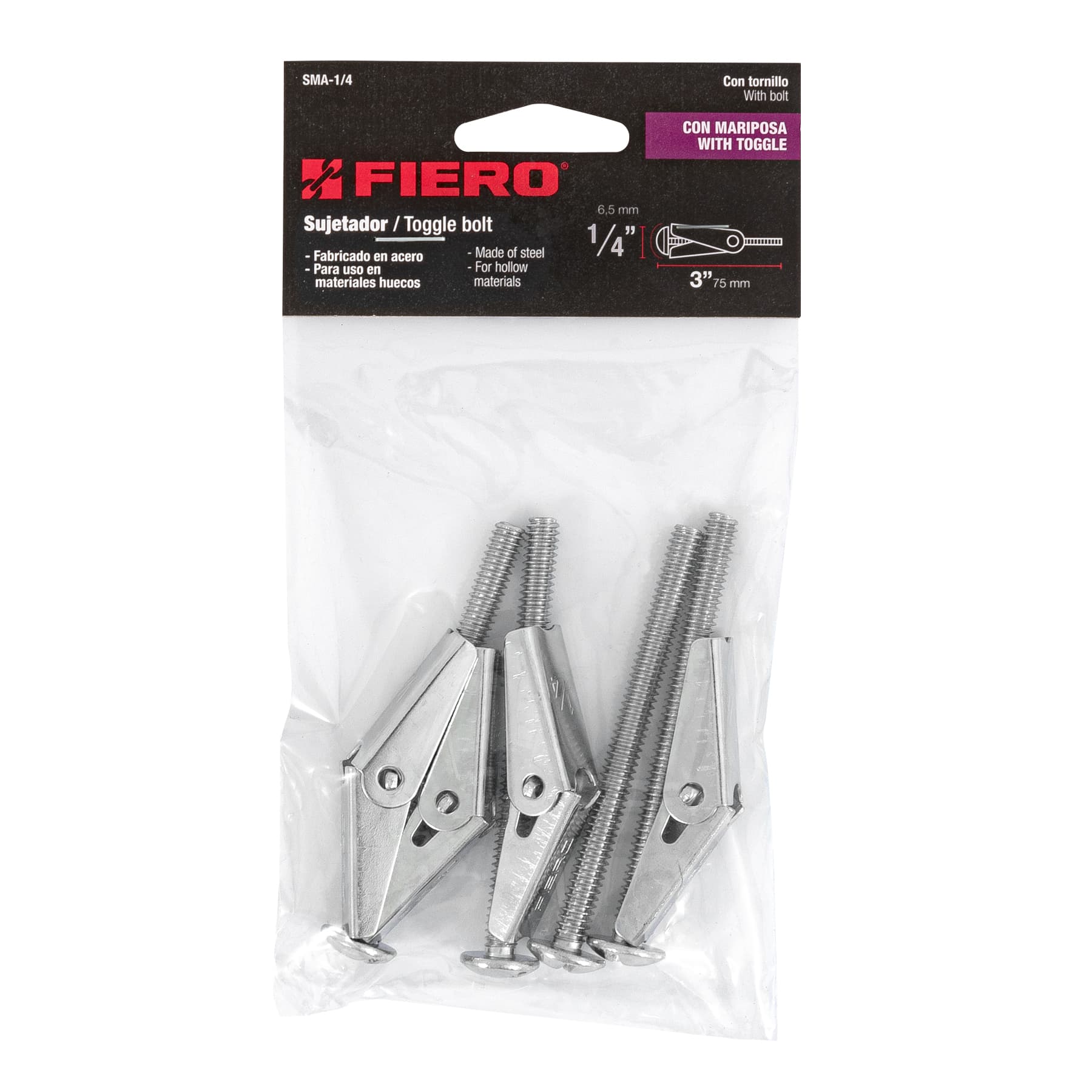 Bolsa con 4 sujetadores tipo mariposa de 1/4 x 3, FIERO – Truper