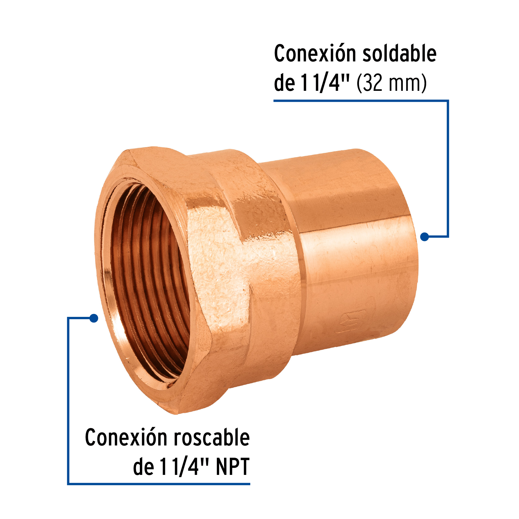 Conector de cobre, rosca interior 1-1/4, Foset – Truper