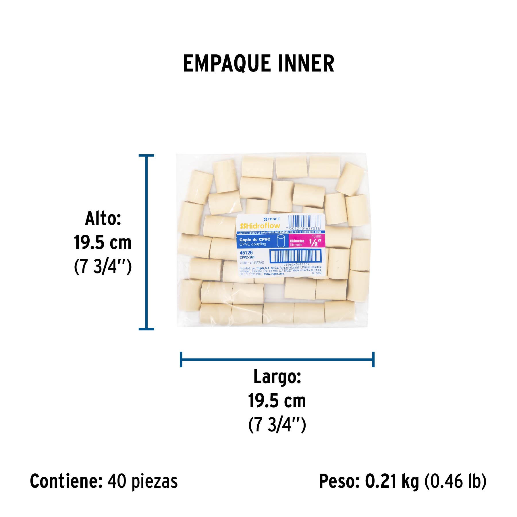 Las imágenes de los productos son ilustrativas y pueden diferir del producto real. Por favor, lea detenidamente las especificaciones, advertencias e instrucciones antes de utilizar cualquier producto. La garantía aplica únicamente ante fallas derivadas de defectos de fabricación. Quedan excluidos de cobertura los daños provocados por uso indebido, abuso o manejo inadecuado. Codigo 45126 Clave CPVC-261