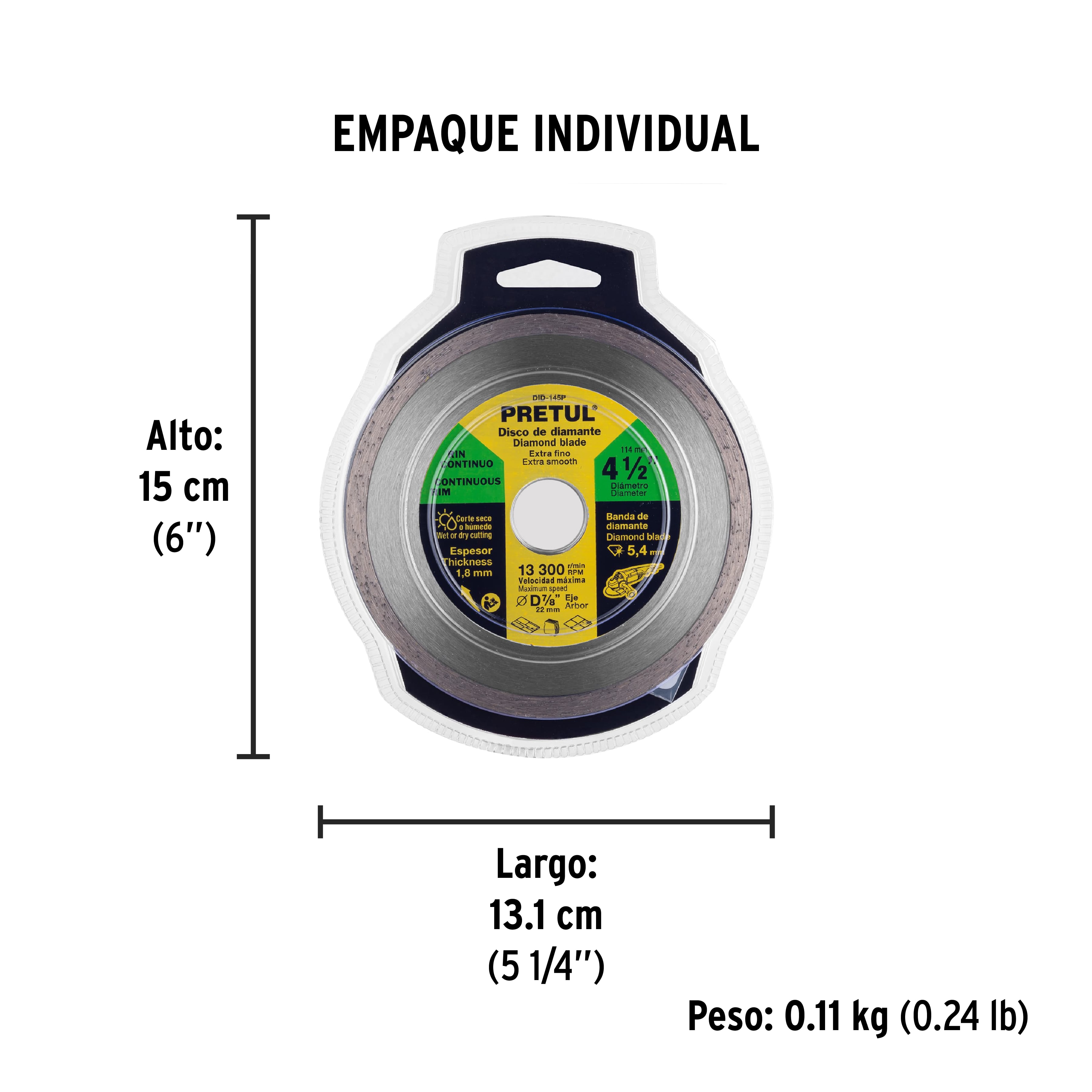Disco de diamante de 4-1/2 x 1.8 mm, rin continuo, PRETUL – Truper