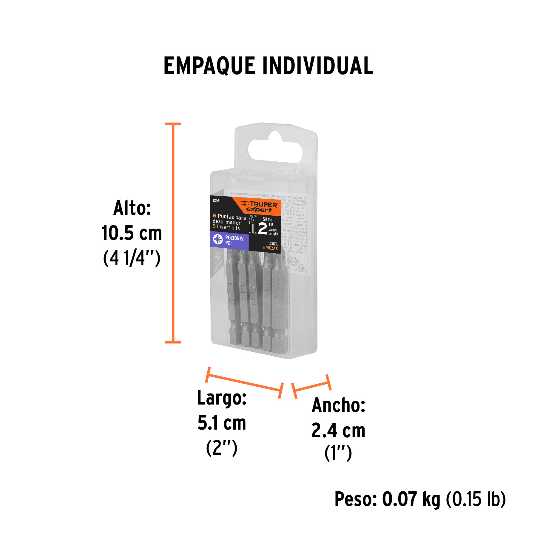 Estuche con 5 puntas pozidriv PZ1 largo 2, Truper Expert