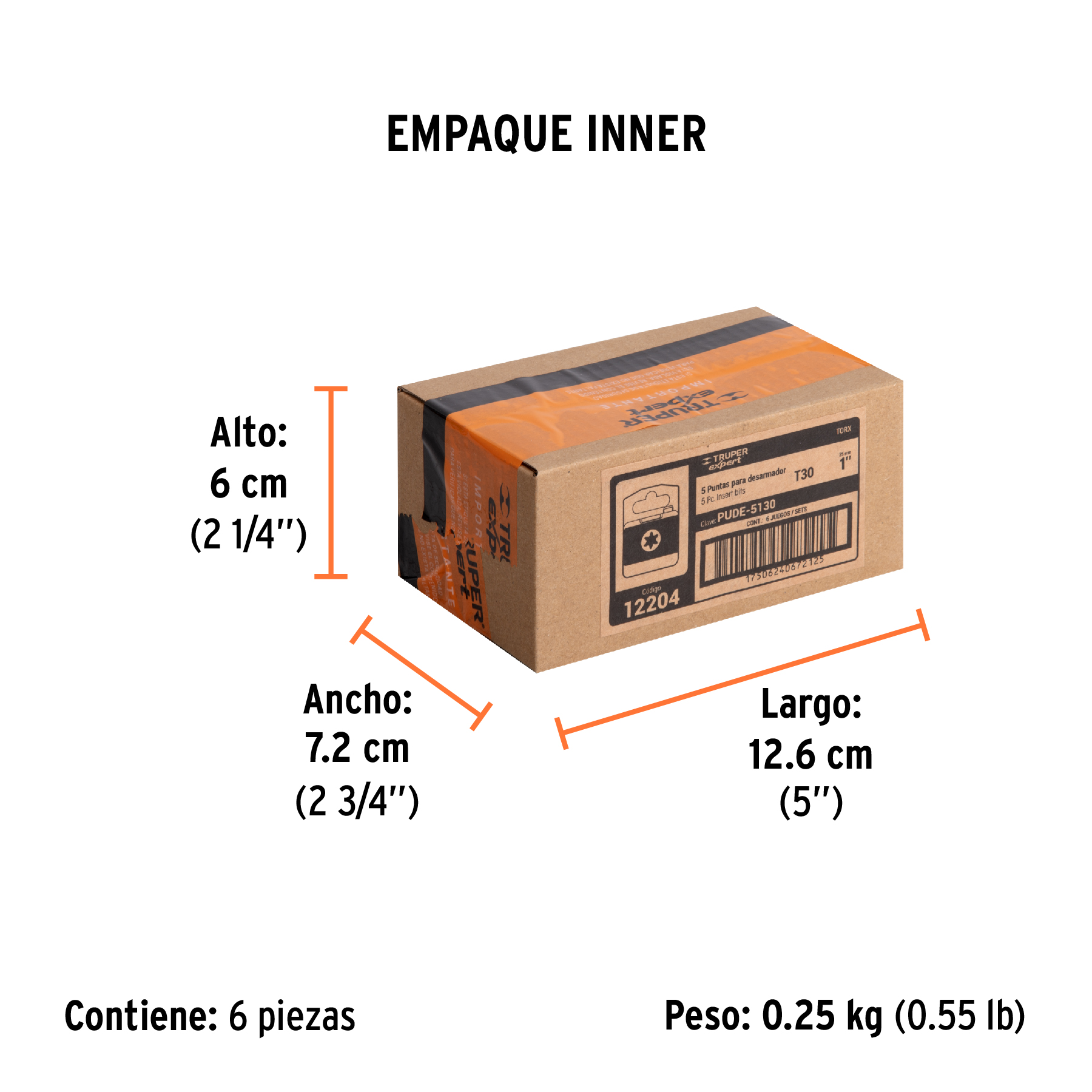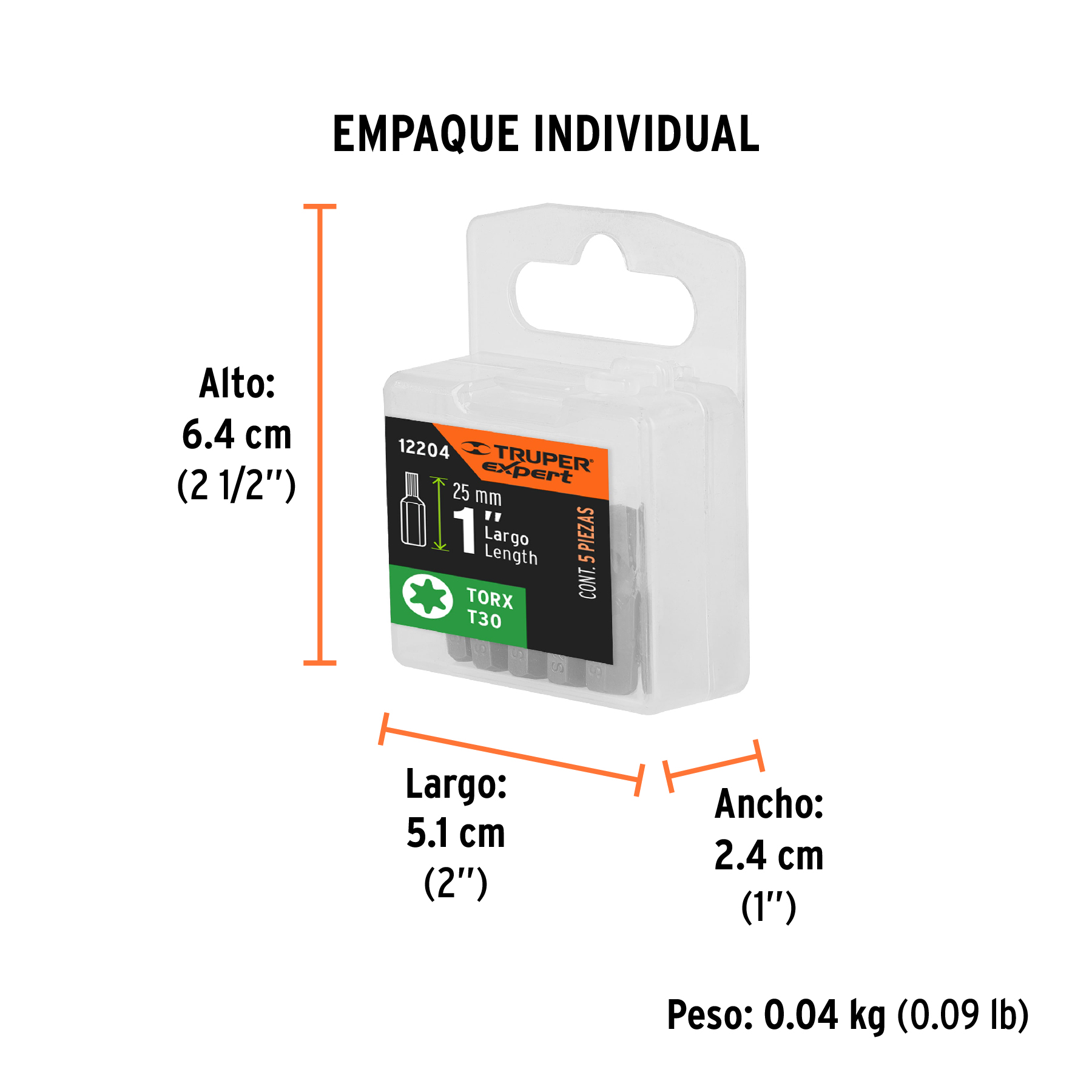 Estuche con 5 puntas torx T30 largo 1, Truper Expert