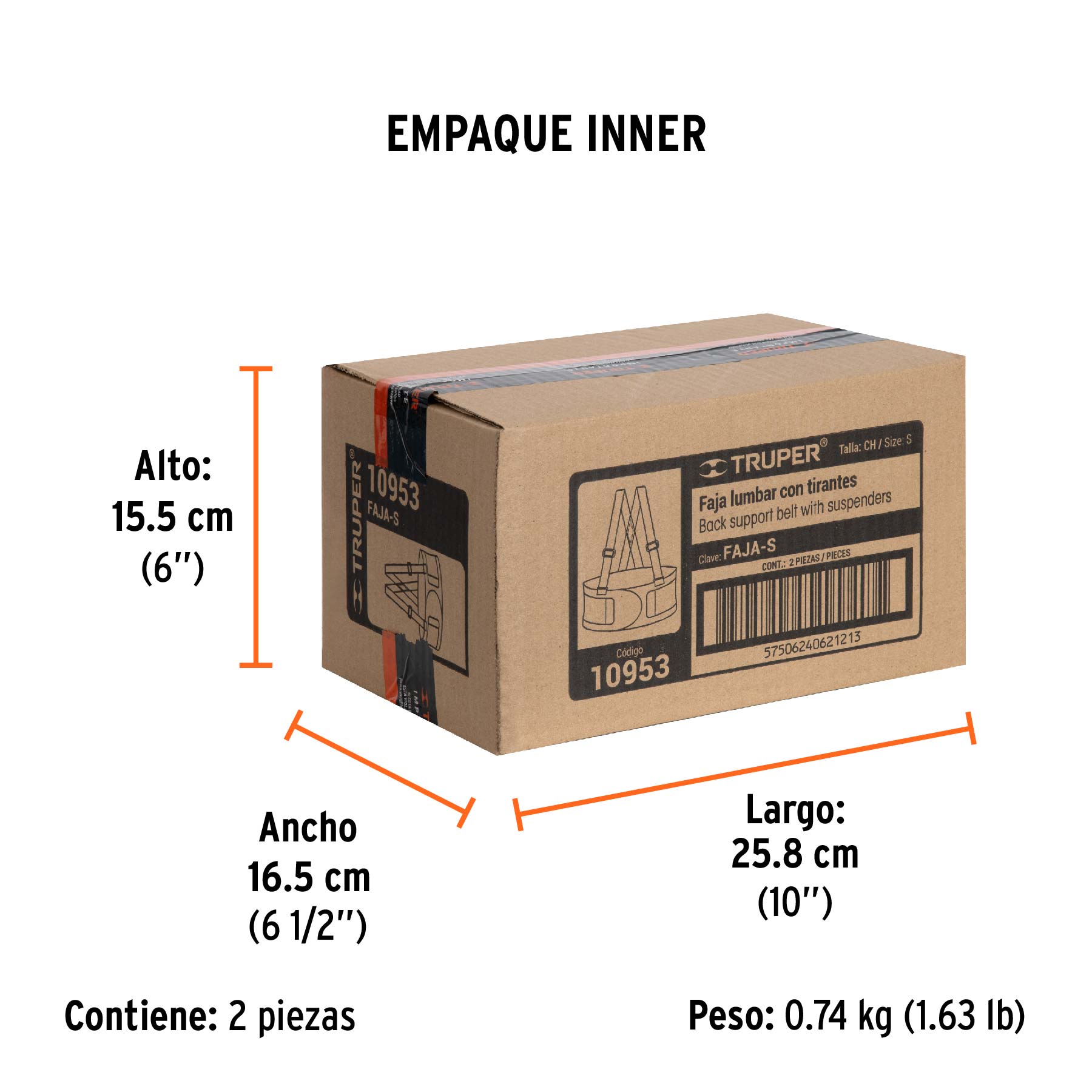 Las imágenes de los productos son ilustrativas y pueden diferir del producto real. Por favor, lea detenidamente las especificaciones, advertencias e instrucciones antes de utilizar cualquier producto. La garantía aplica únicamente ante fallas derivadas de defectos de fabricación. Quedan excluidos de cobertura los daños provocados por uso indebido, abuso o manejo inadecuado. Codigo 10953 Clave FAJA-S