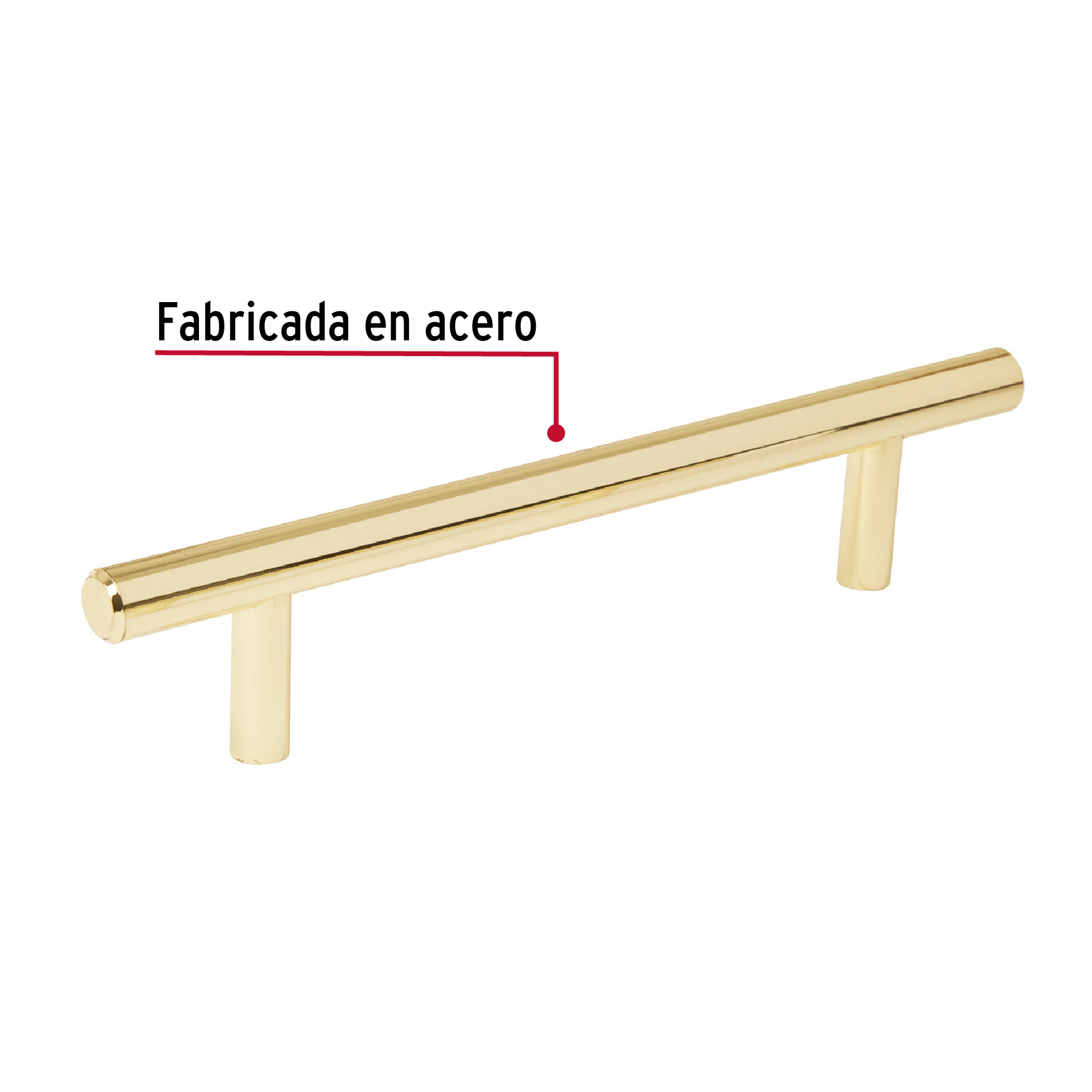 Jaladera de acero, 128mm, línea Cilindro, latón brillante – Truper