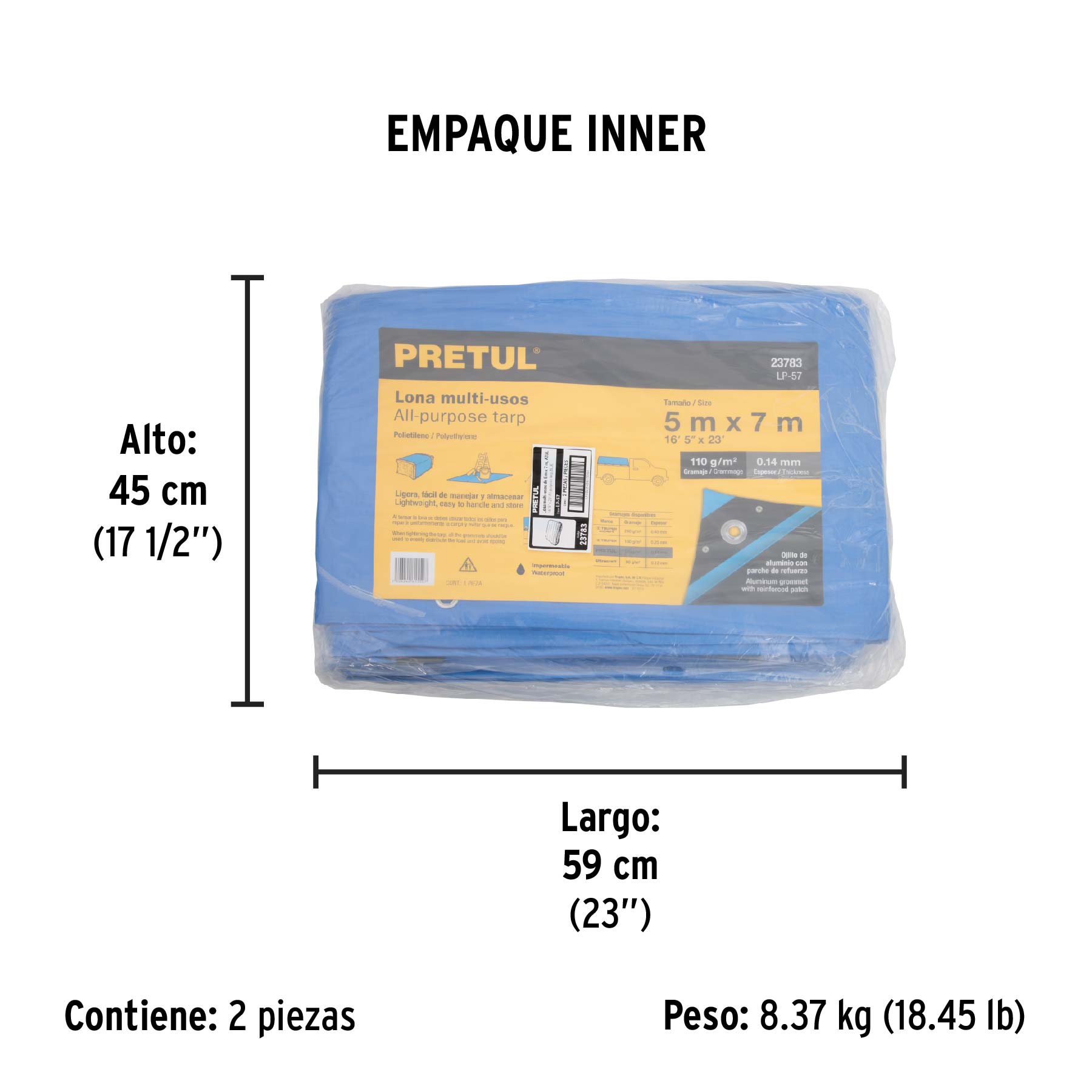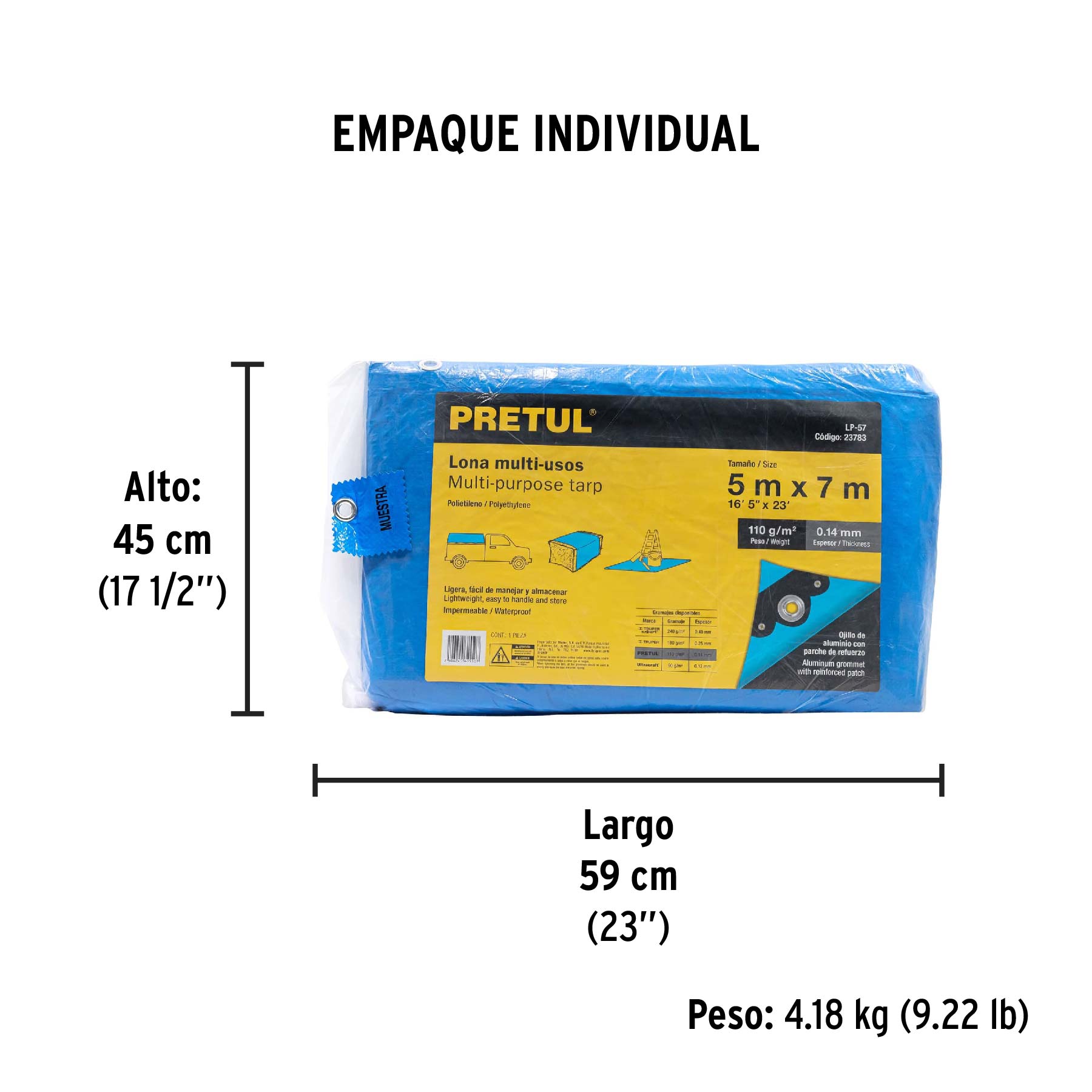 Lona de polietileno 5 x 7 m, azul, 110 g/m2, PRETUL – Truper