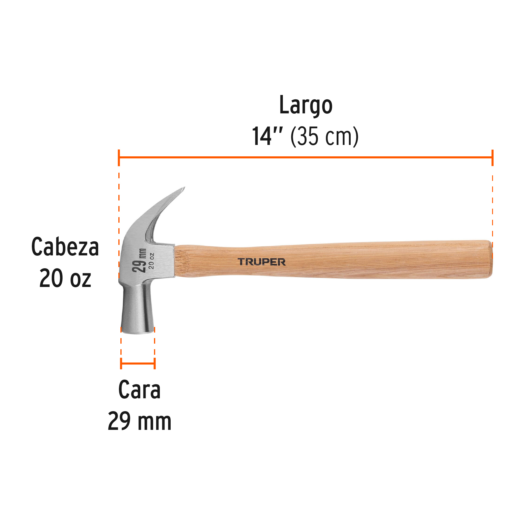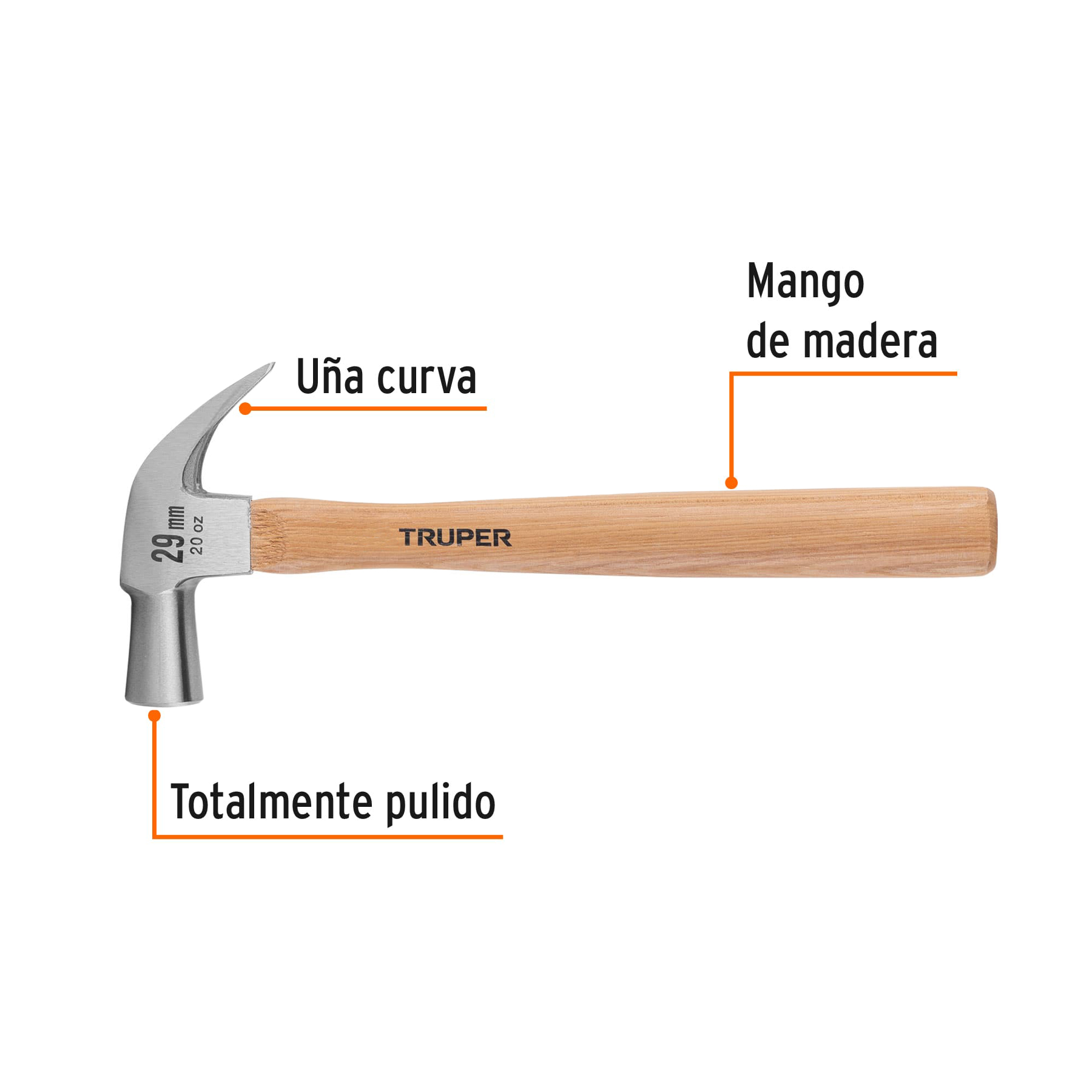 Martillo cabeza cónica 29 mm uña curva, mango madera, TRUPER