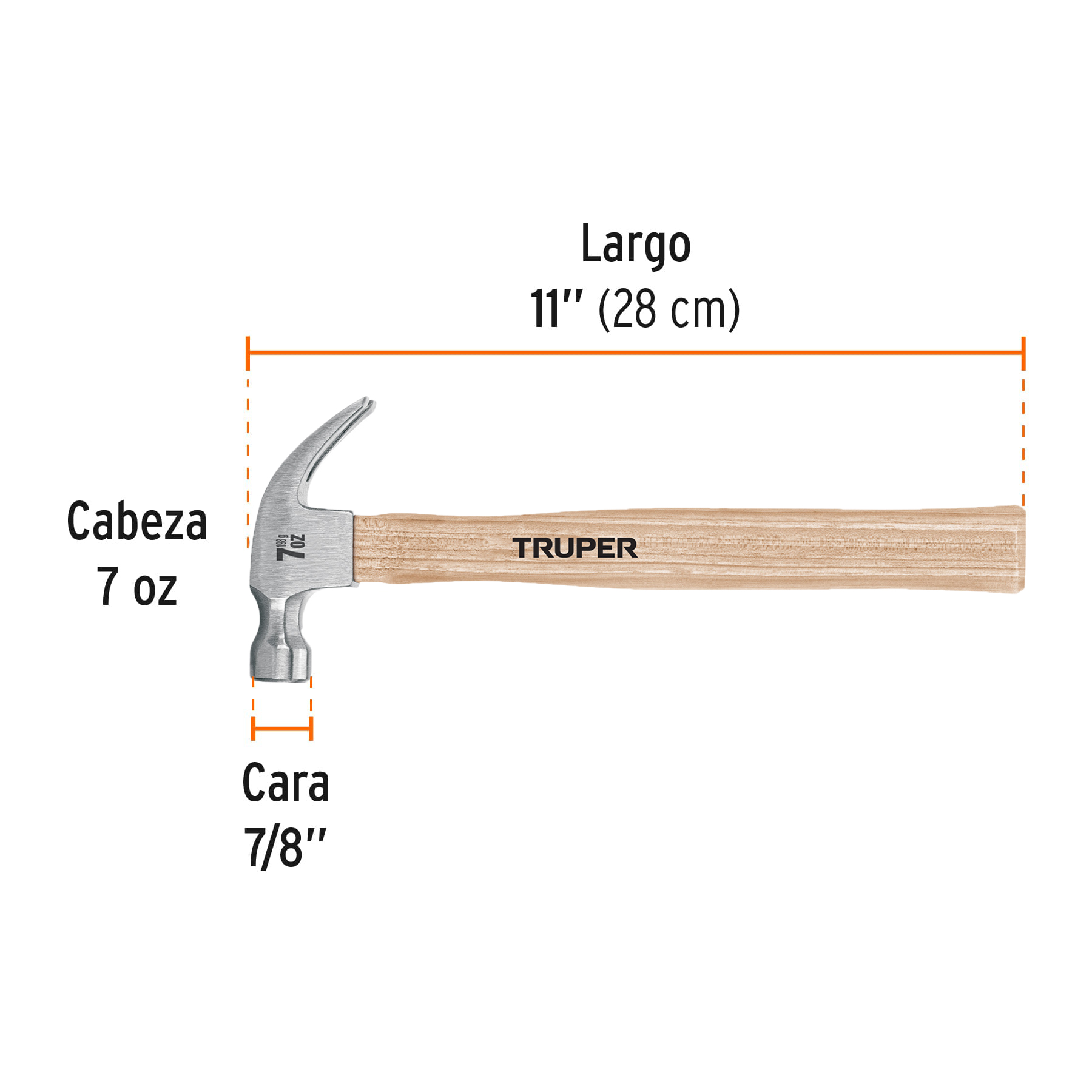 Martillo pulido, 7 oz, uña curva, mango madera, TRUPER