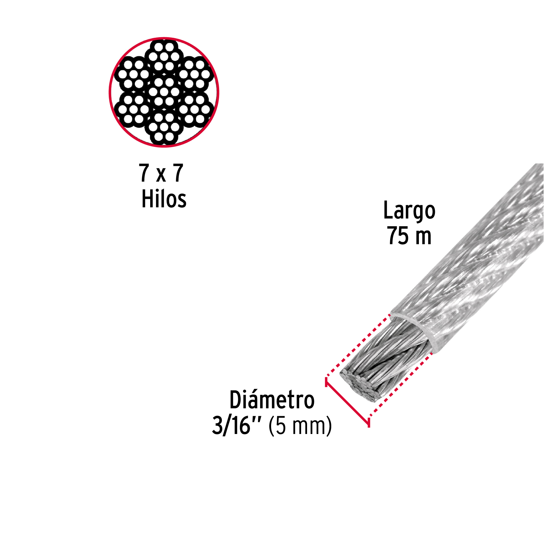 Las imágenes de los productos son ilustrativas y pueden diferir del producto real. Por favor, lea detenidamente las especificaciones, advertencias e instrucciones antes de utilizar cualquier producto. La garantía aplica únicamente ante fallas derivadas de defectos de fabricación. Quedan excluidos de cobertura los daños provocados por uso indebido, abuso o manejo inadecuado. Codigo 44217 Clave CAB-3/16RX