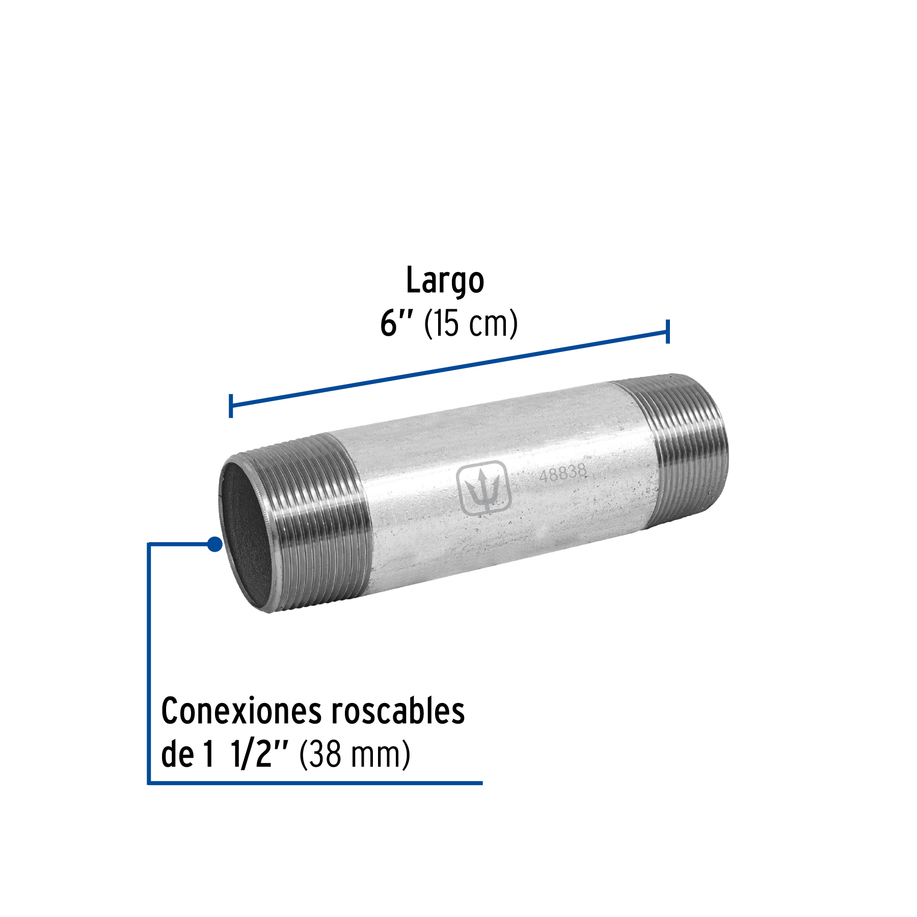 Niple de acero galvanizado 1-1/2 x 6, Foset – Truper