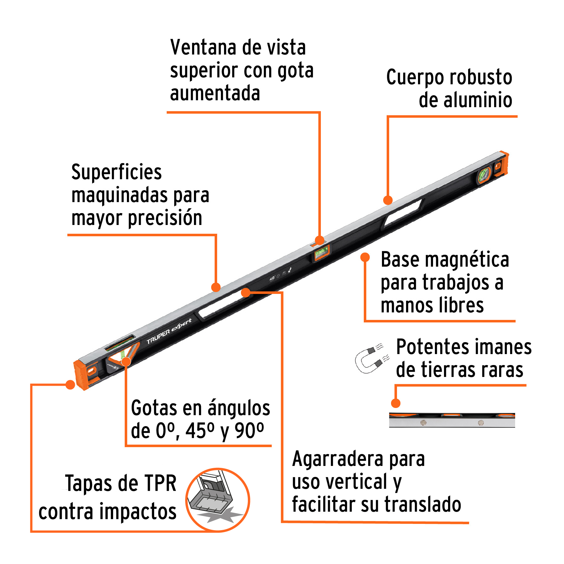 Nivel profesional magnético de 48 c/protección TPR, Expert – Truper