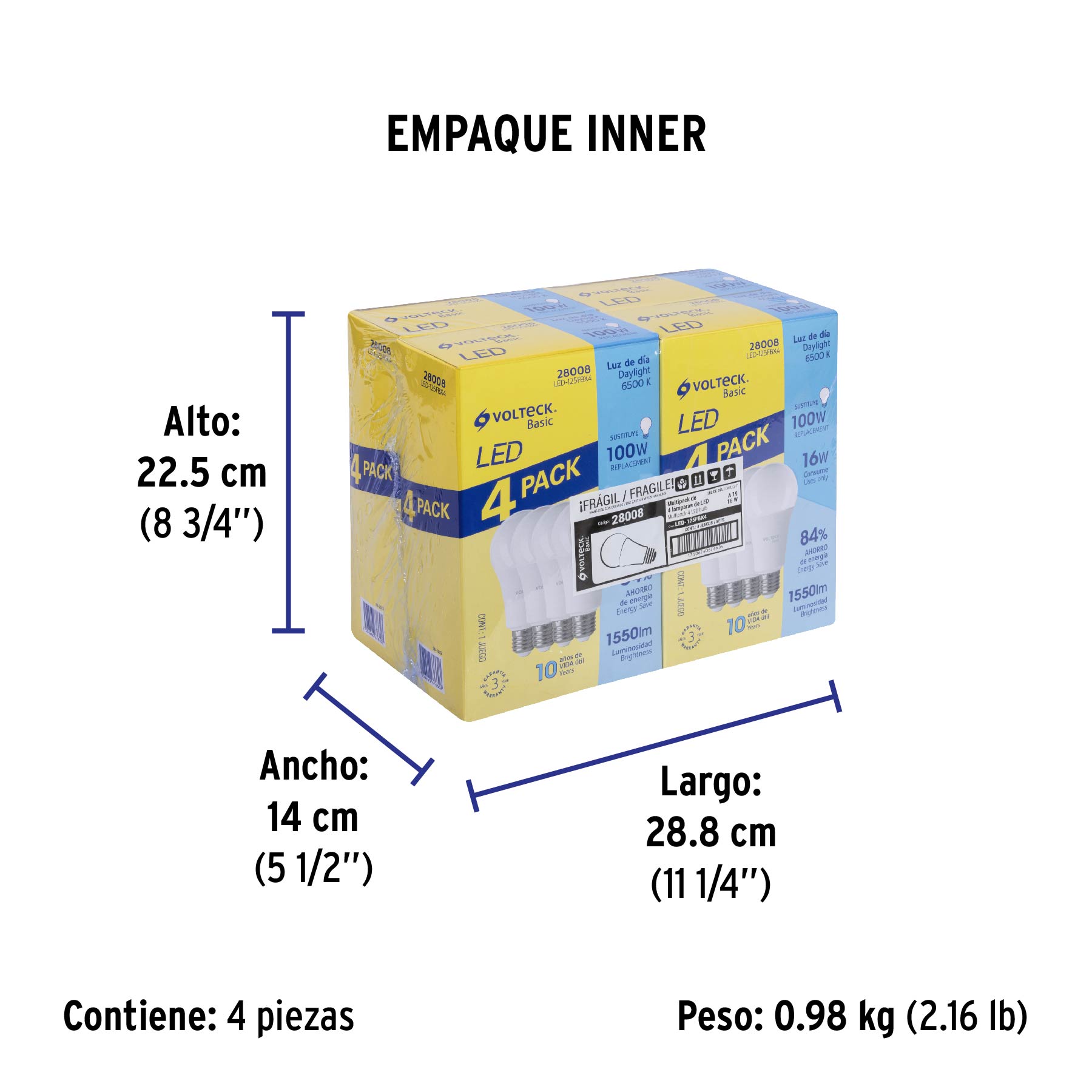 Las imágenes de los productos son ilustrativas y pueden diferir del producto real. Por favor, lea detenidamente las especificaciones, advertencias e instrucciones antes de utilizar cualquier producto. La garantía aplica únicamente ante fallas derivadas de defectos de fabricación. Quedan excluidos de cobertura los daños provocados por uso indebido, abuso o manejo inadecuado. Codigo 28008 Clave LED-125FBX4