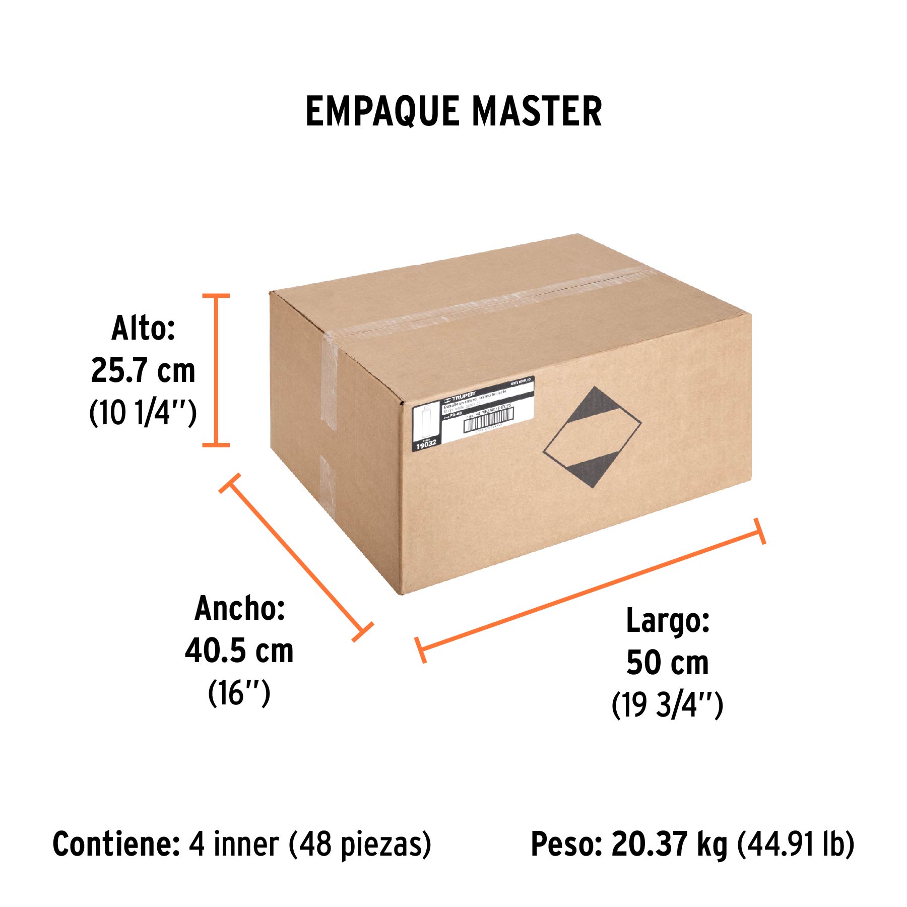 Las imágenes de los productos son ilustrativas y pueden diferir del producto real. Por favor, lea detenidamente las especificaciones, advertencias e instrucciones antes de utilizar cualquier producto. La garantía aplica únicamente ante fallas derivadas de defectos de fabricación. Quedan excluidos de cobertura los daños provocados por uso indebido, abuso o manejo inadecuado. Codigo 19032 Clave PA-BB