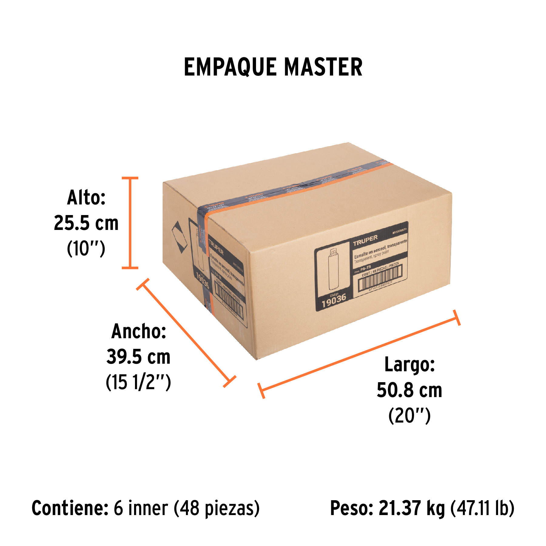 Las imágenes de los productos son ilustrativas y pueden diferir del producto real. Por favor, lea detenidamente las especificaciones, advertencias e instrucciones antes de utilizar cualquier producto. La garantía aplica únicamente ante fallas derivadas de defectos de fabricación. Quedan excluidos de cobertura los daños provocados por uso indebido, abuso o manejo inadecuado. Codigo 19036 Clave PA-TR