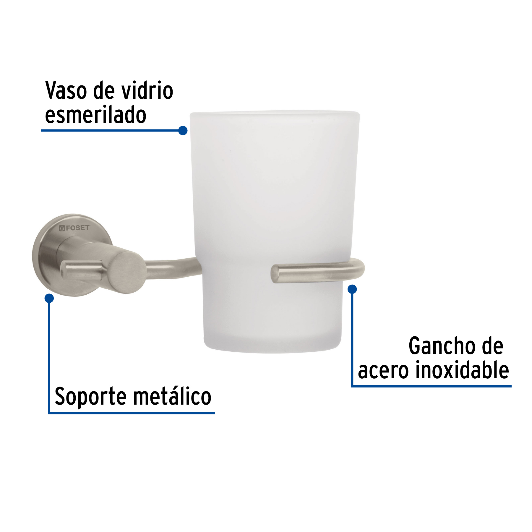 Portavaso cepillero satín con vaso de vidrio, Foset Element – Truper