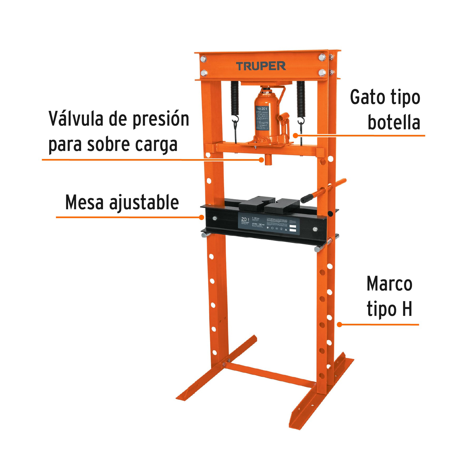 Prensa hidráulica tipo H de 20 ton, con gato de botella – Truper
