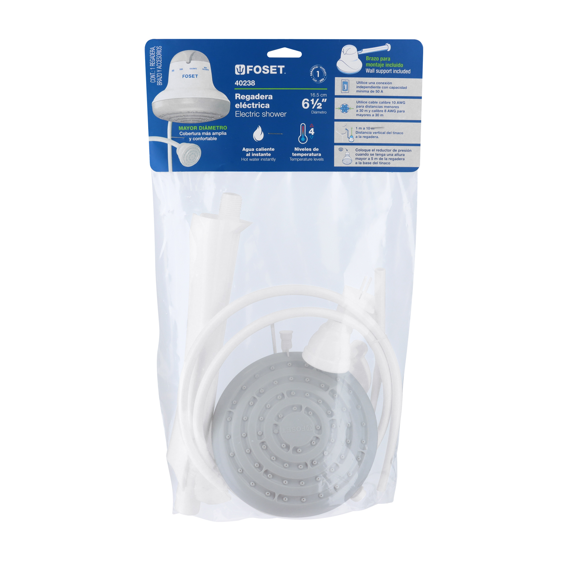 Regadera eléctrica, 4 temperaturas, 16.5cm, gris, Foset – Truper