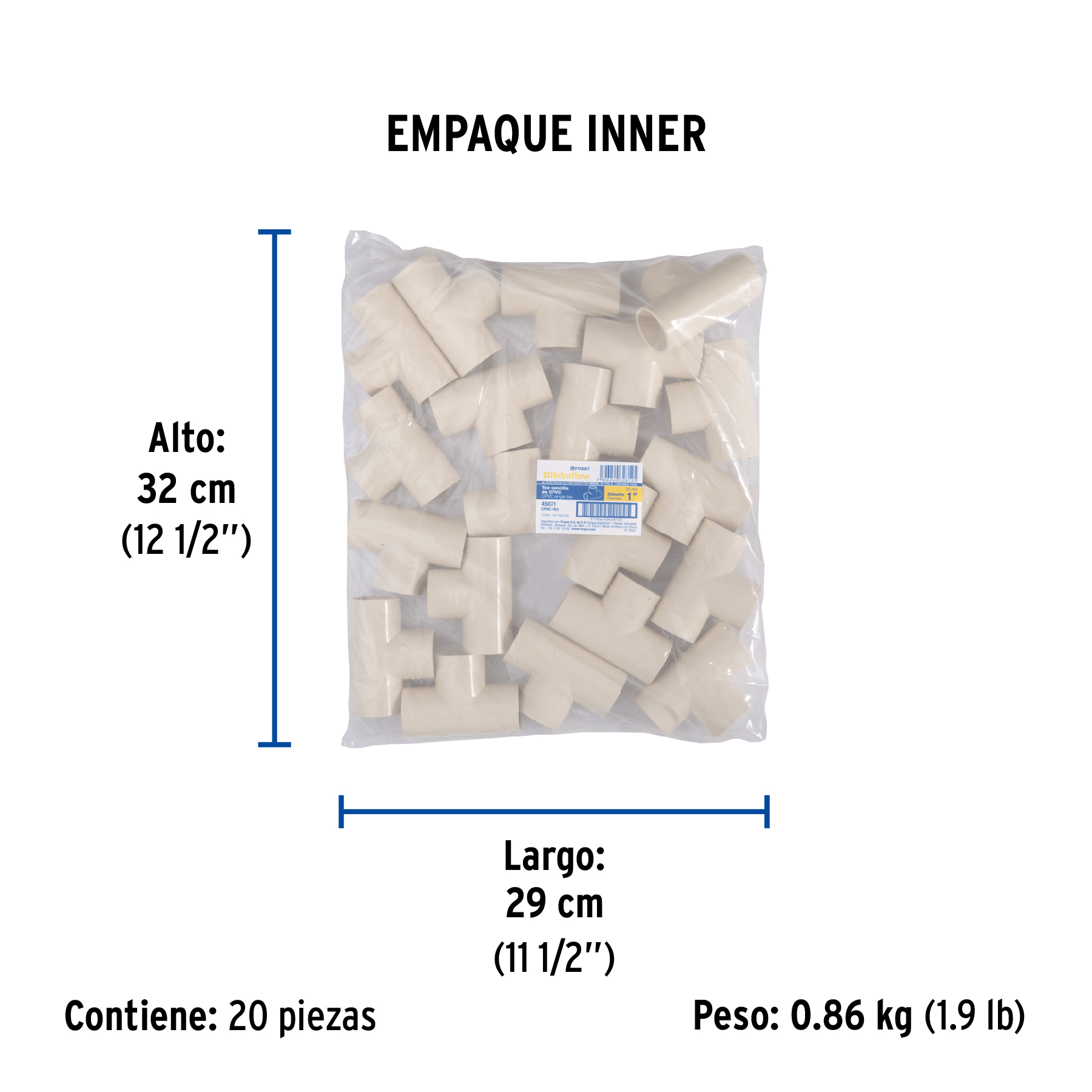 Las imágenes de los productos son ilustrativas y pueden diferir del producto real. Por favor, lea detenidamente las especificaciones, advertencias e instrucciones antes de utilizar cualquier producto. La garantía aplica únicamente ante fallas derivadas de defectos de fabricación. Quedan excluidos de cobertura los daños provocados por uso indebido, abuso o manejo inadecuado. Codigo 45071 Clave CPVC-763